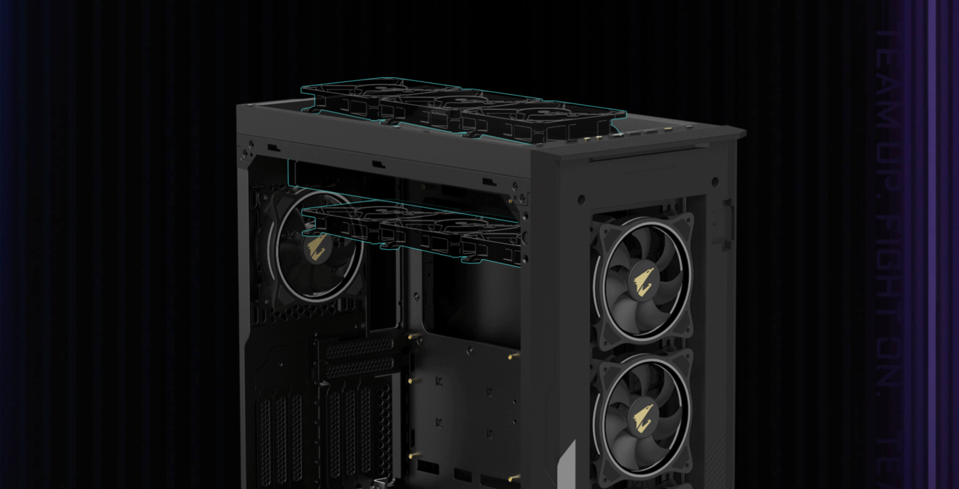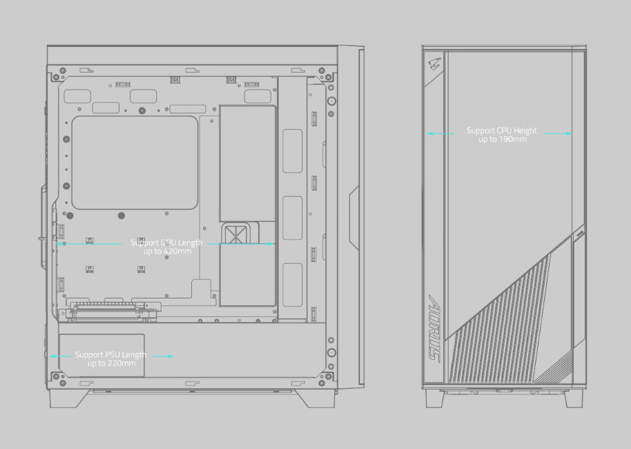 The AORUS C500 GLASS is compatible with every single AORUS component and has room to hold up to E-ATX motherboards and radiators up to 420mm, providing users with the upmost flexibility.