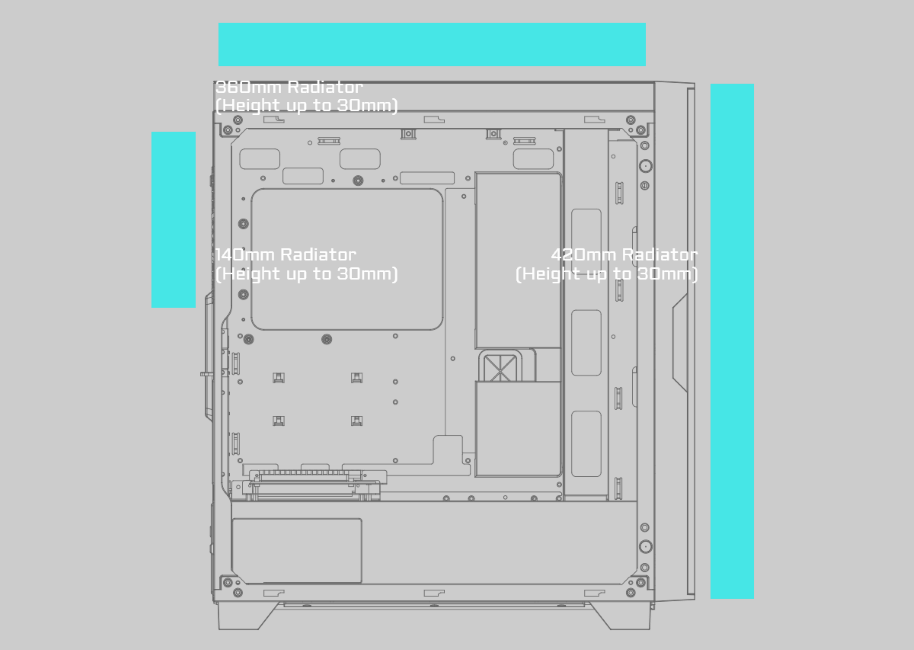 Up to 420mm Liquid Cooling Compatible