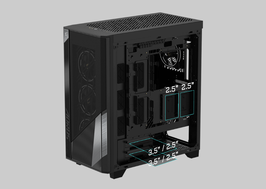 The AORUS C500 GLASS comes with the large mesh front and the
