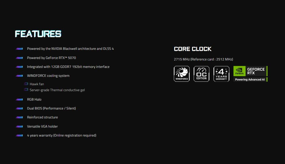 | Memory Type | GDDR7 | Recommended PSU | 750W |