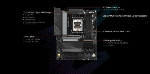 | CPU | AMD Socket AM5, support for: AMD Ryzen 7000, 8000, 9000 Series Processors * Please refer to "CPU Support List" for more information. |