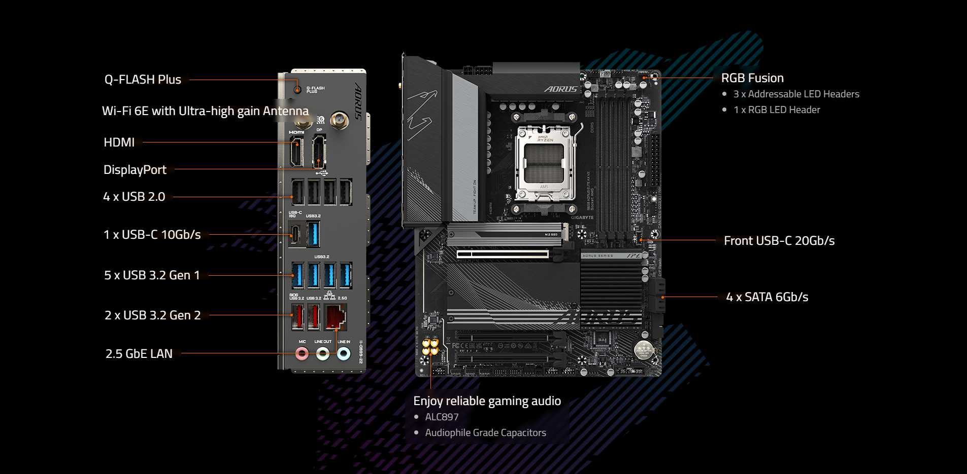 - Dual Channel DDR5:4*DIMMs with AMD EXPO & Intel XMP Memory Module Support