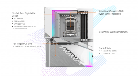 - Dual Channel DDR5:4*DIMMs with AMD EXPO Memory Module Support