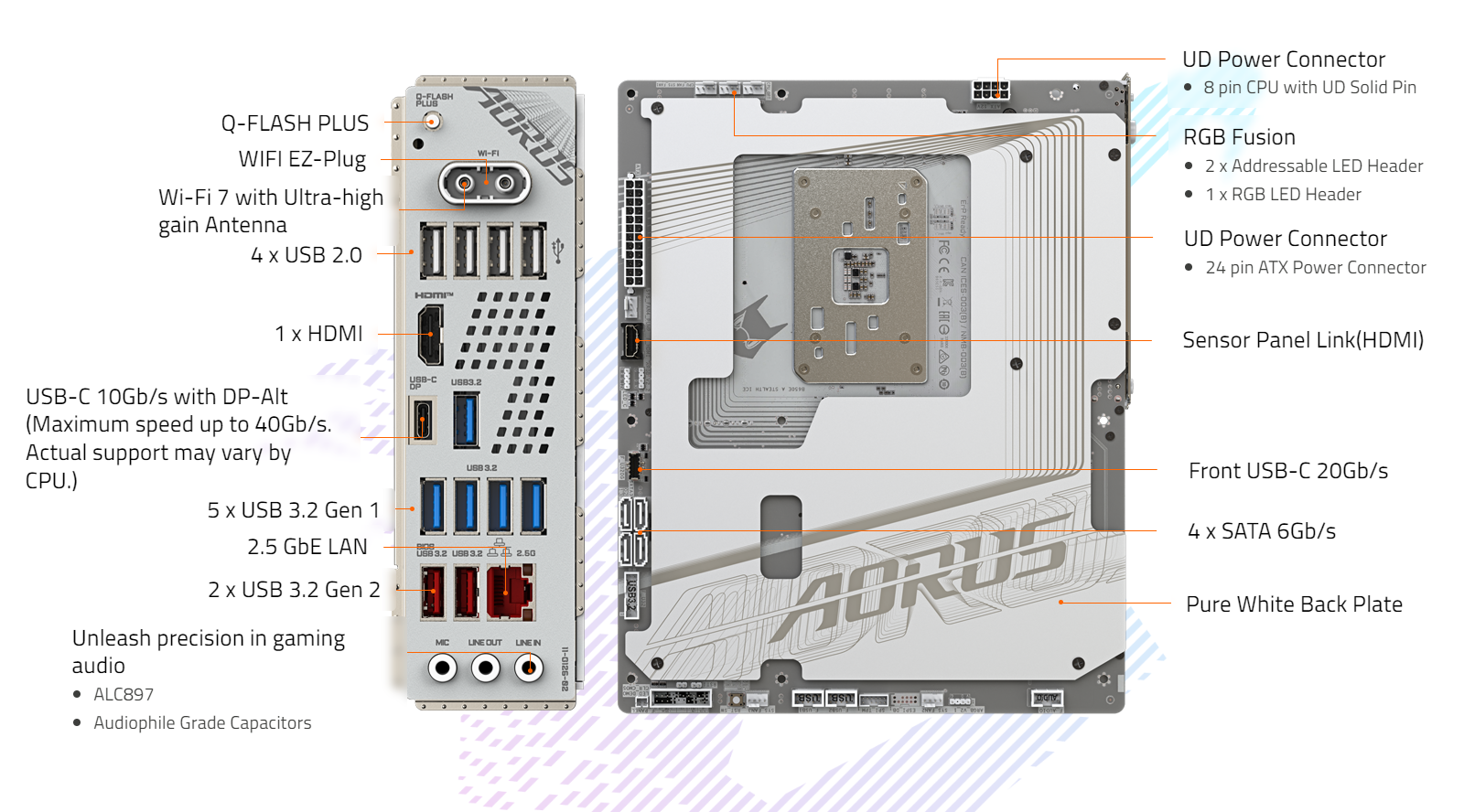 - PCIe UD Slot X: PCIe 5.0 x16 slot with 10X strength for graphics card