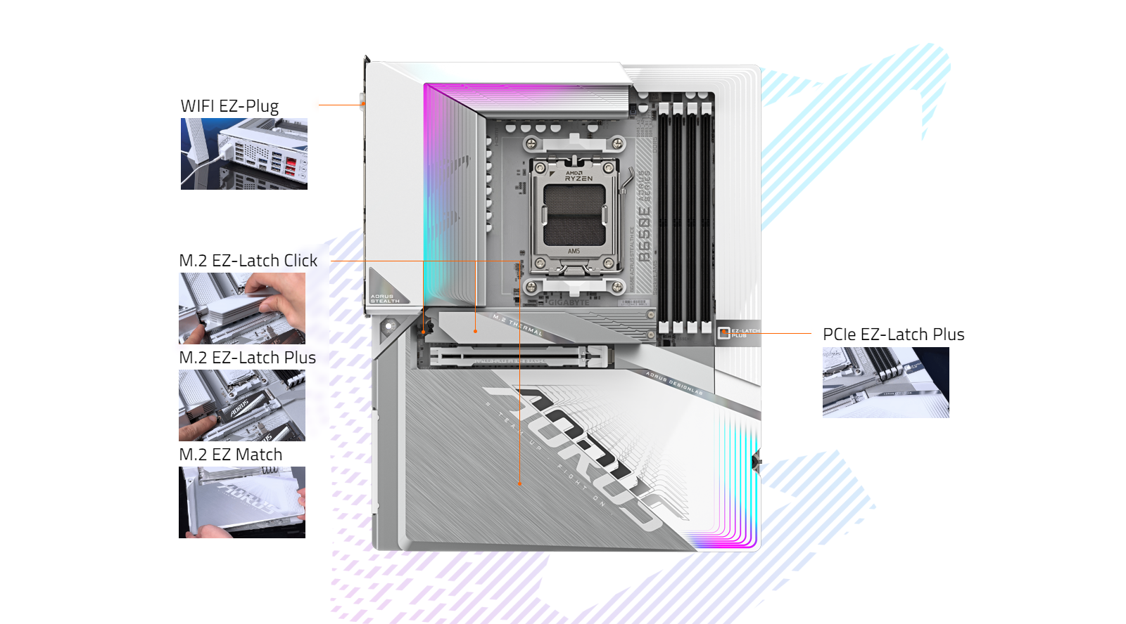- EZ-Latch Plus:M.2 slots with Quick Release & Screwless Design