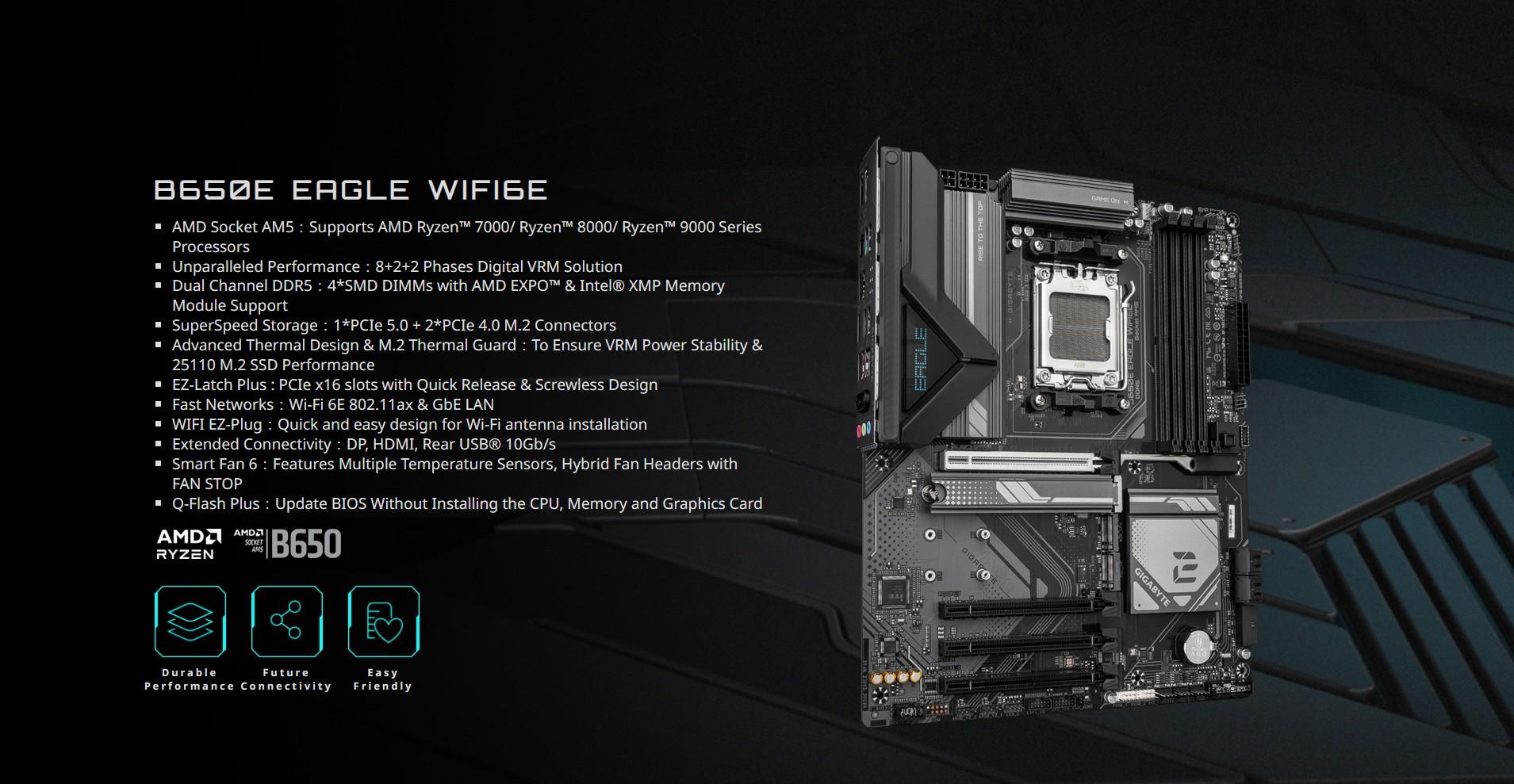 Дънна платка GIGABYTE B650E EAGLE WIFI 6E, AM5