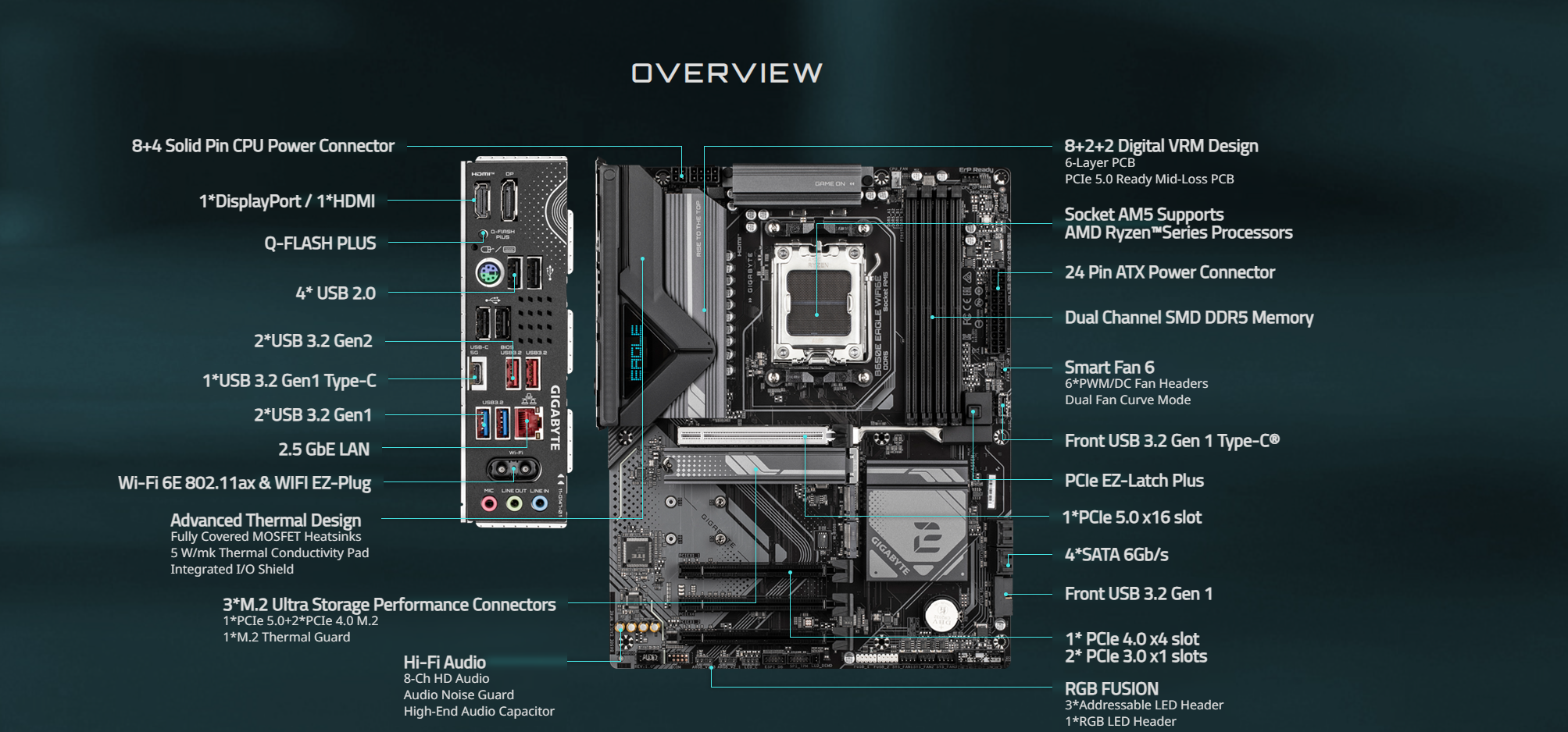 AMD Ryzen 9000 Series Processors/ AMD Ryzen 8000 Series Processors/ AMD Ryzen 7000 Series Processors (Go to GIGABYTE's website for the latest CPU support list.) |