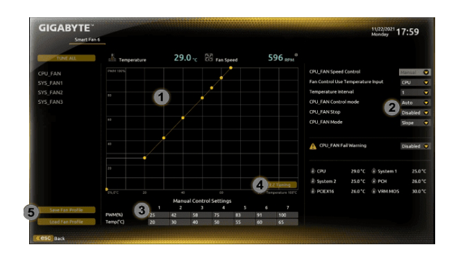- EZ Tuning: Use can place 4 EZ Tuning points at rough temperature/fan speed, and Smart Fan 6 can quickly generate a fan curve.
