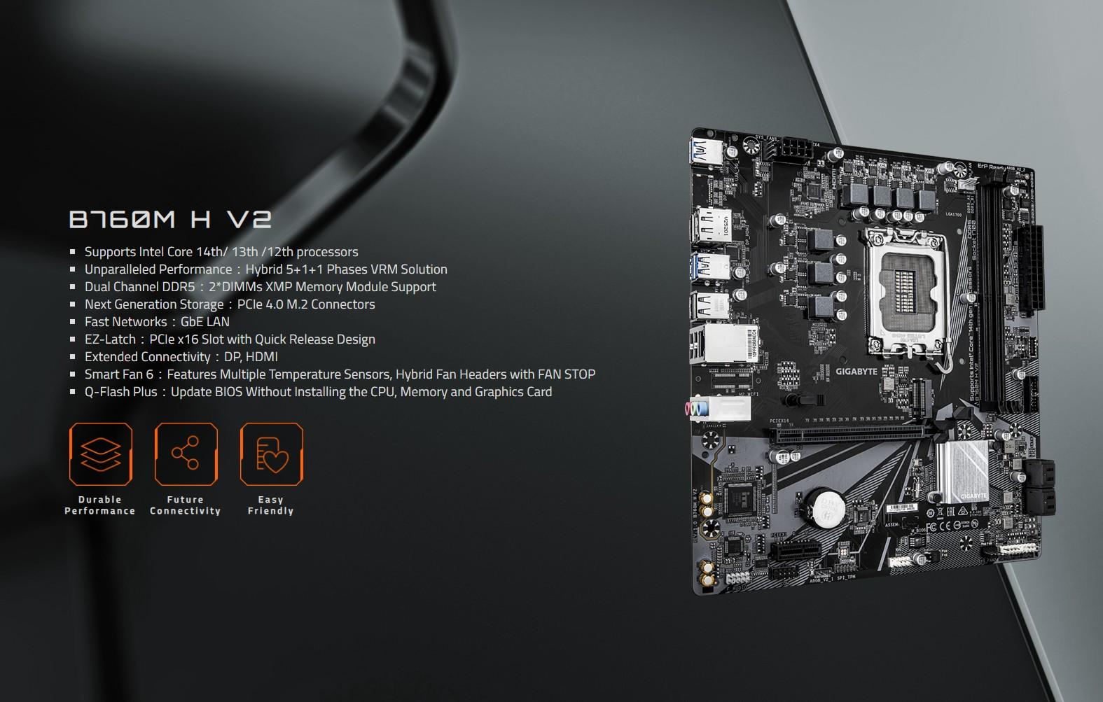 Дънна платка GIGABYTE B760M H V2 DDR5, socket 1700