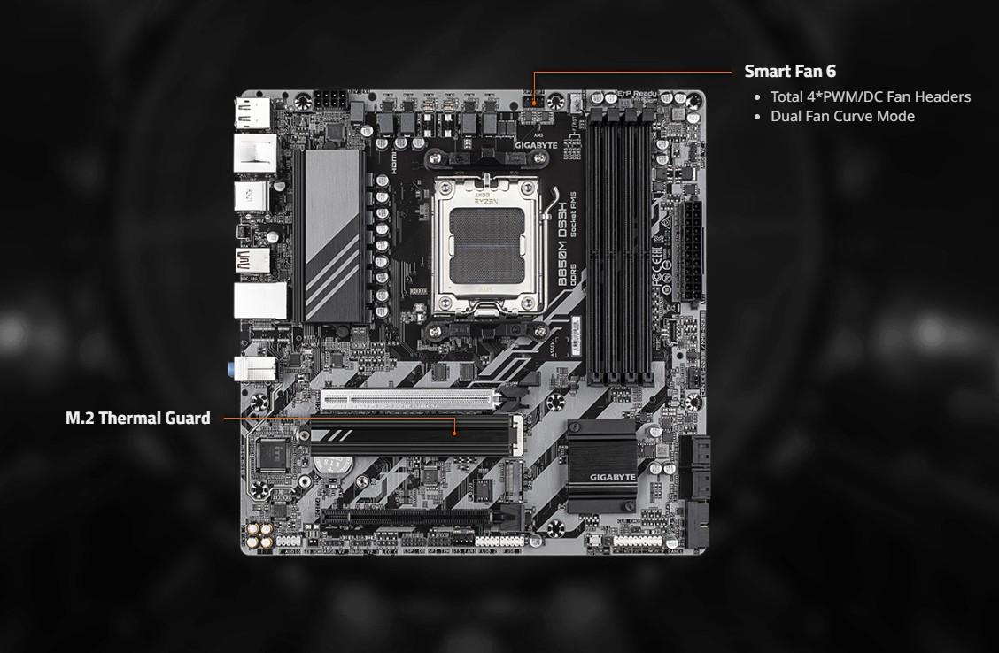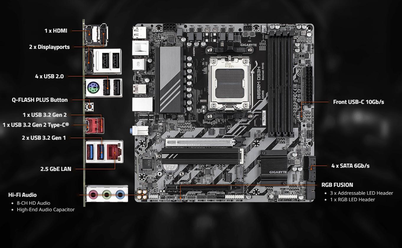 GIGABYTE B850M DS3H е гъвкава дънна платка, предназначена за геймъри и компютърни ентусиасти, които търсят солидна основа за своите системи. Ето някои от ключовите й характеристики: