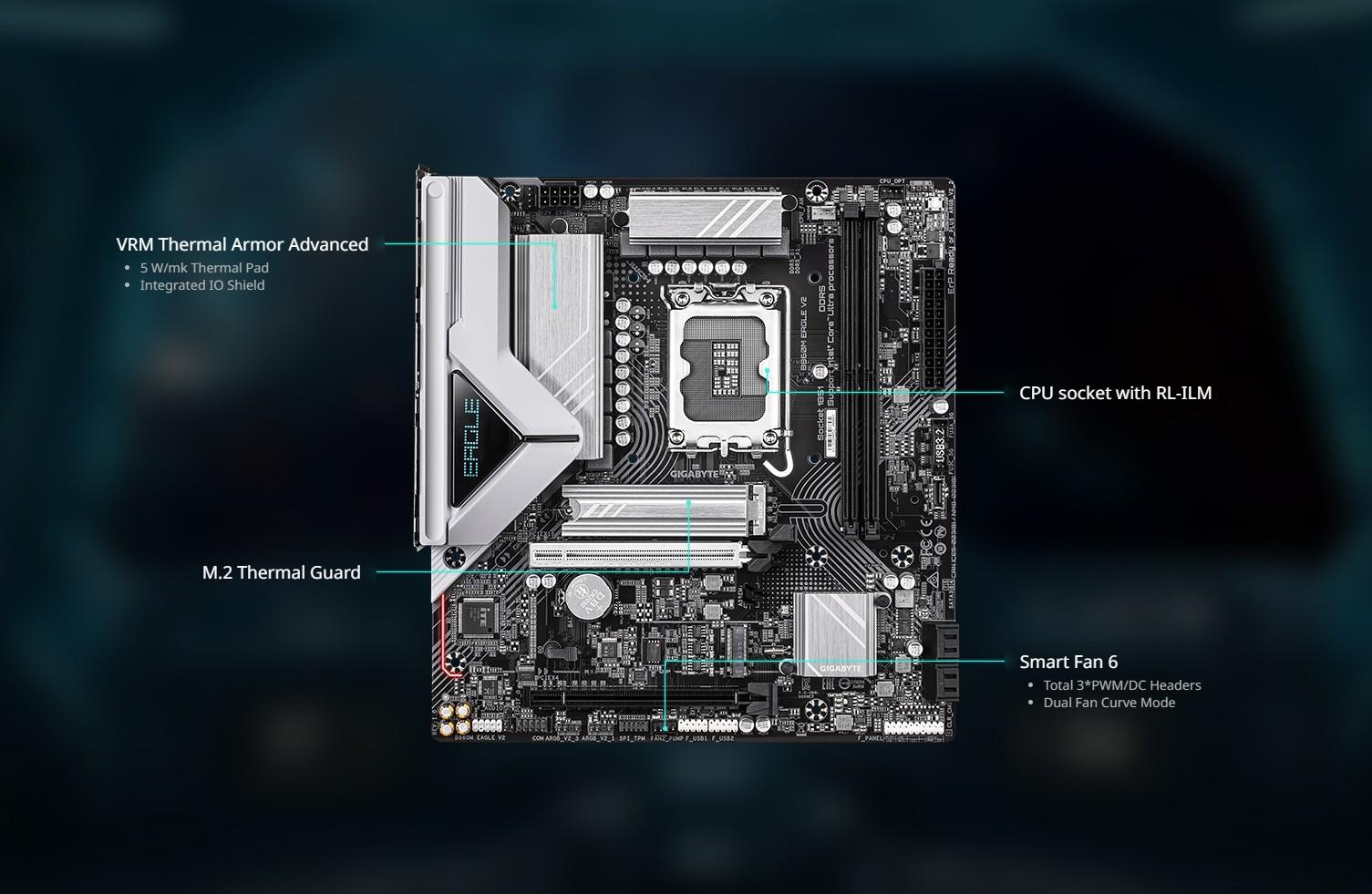 - 1 x M.2 connector (Socket 3, M key, type 2280 PCIe 5.0 x4/x2 SSD support)(M2A_CPU)