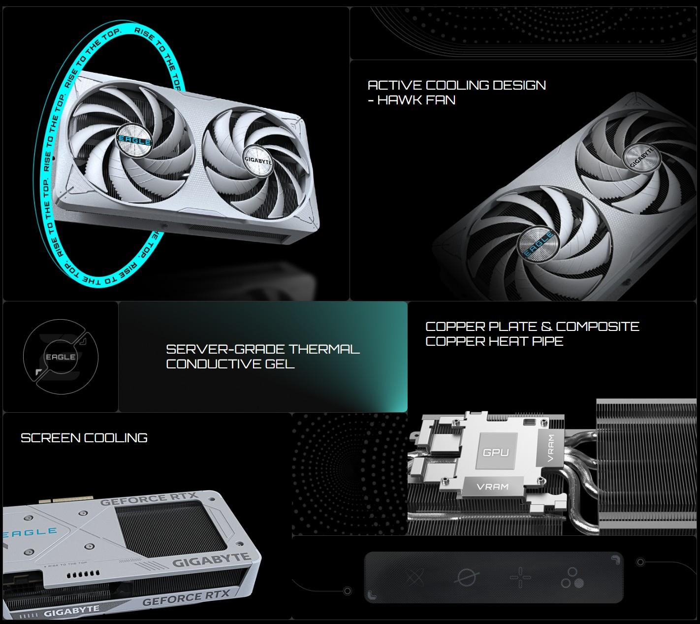 • Охлаждане: WINDFORCE охлаждаща система с Hawk вентилатори, термален гел от сървърен клас, медна пластина и композитни медни топлинни тръби.
