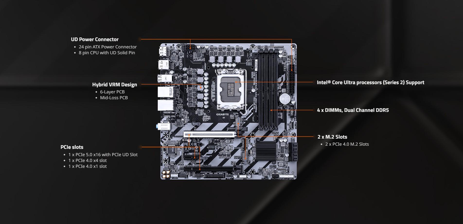| CPU | LGA1851 socket: Support for Intel Core Ultra Processors (Go to GIGABYTE's website for the latest CPU support list.) L3 cache varies with CPU |