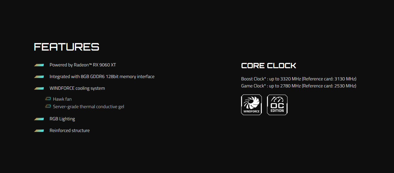 | Core Clock | Boost Clock: up to 3320 MHz (Reference card: 3130 MHz) Game Clock: up to 2780 MHz (Reference card: 2530 MHz) |