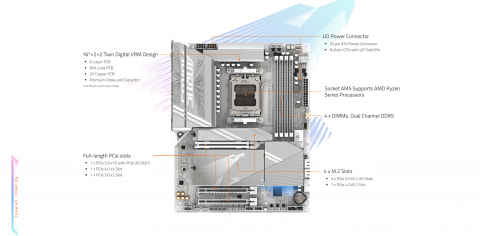 • AMD Socket AM5:Supports AMD Ryzen 9000 / 8000 / 7000 Series Processors