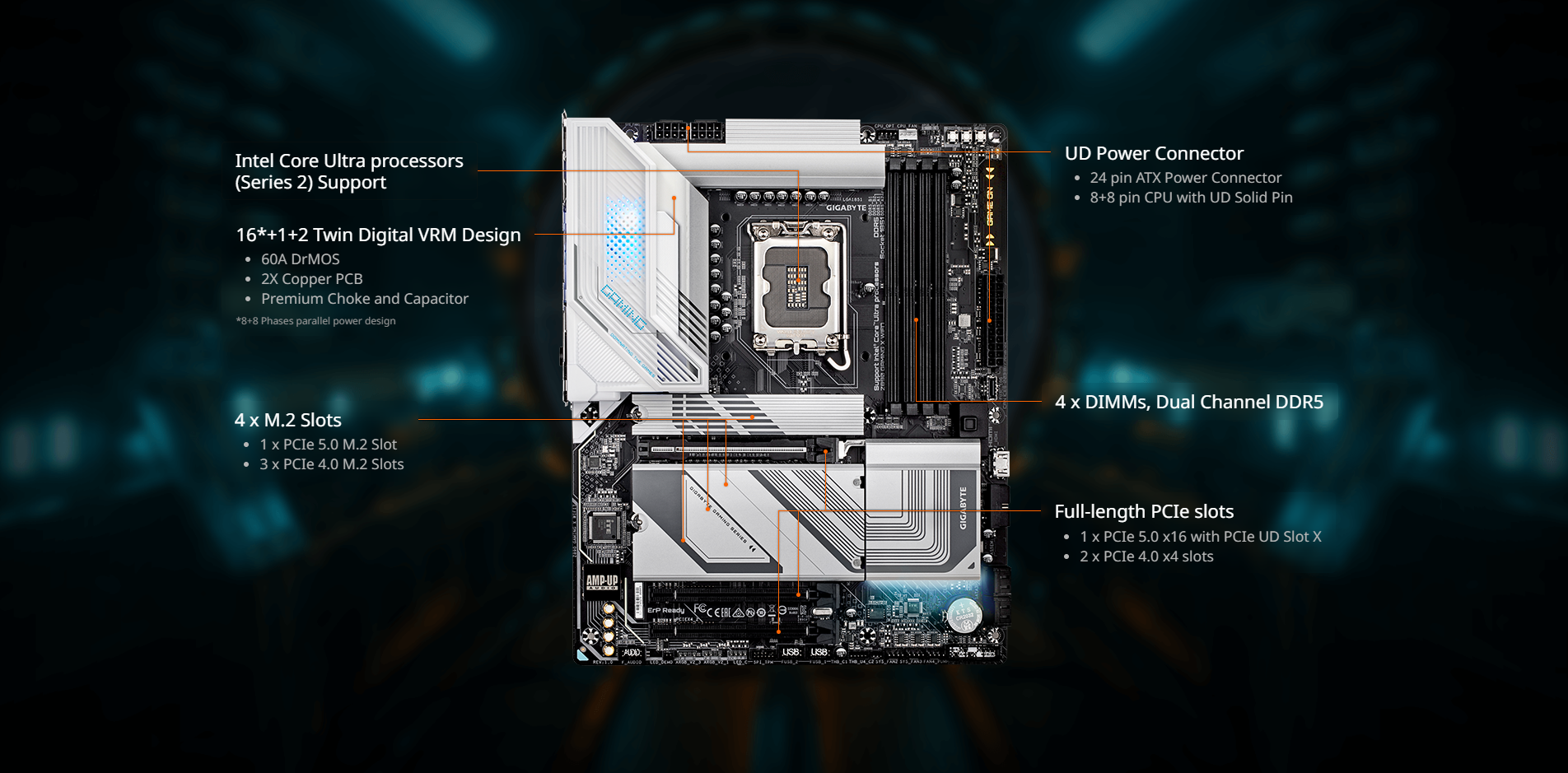 • Ultra-Fast Storage : 4*M.2 slots, including 1* PCIe 5.0 x4