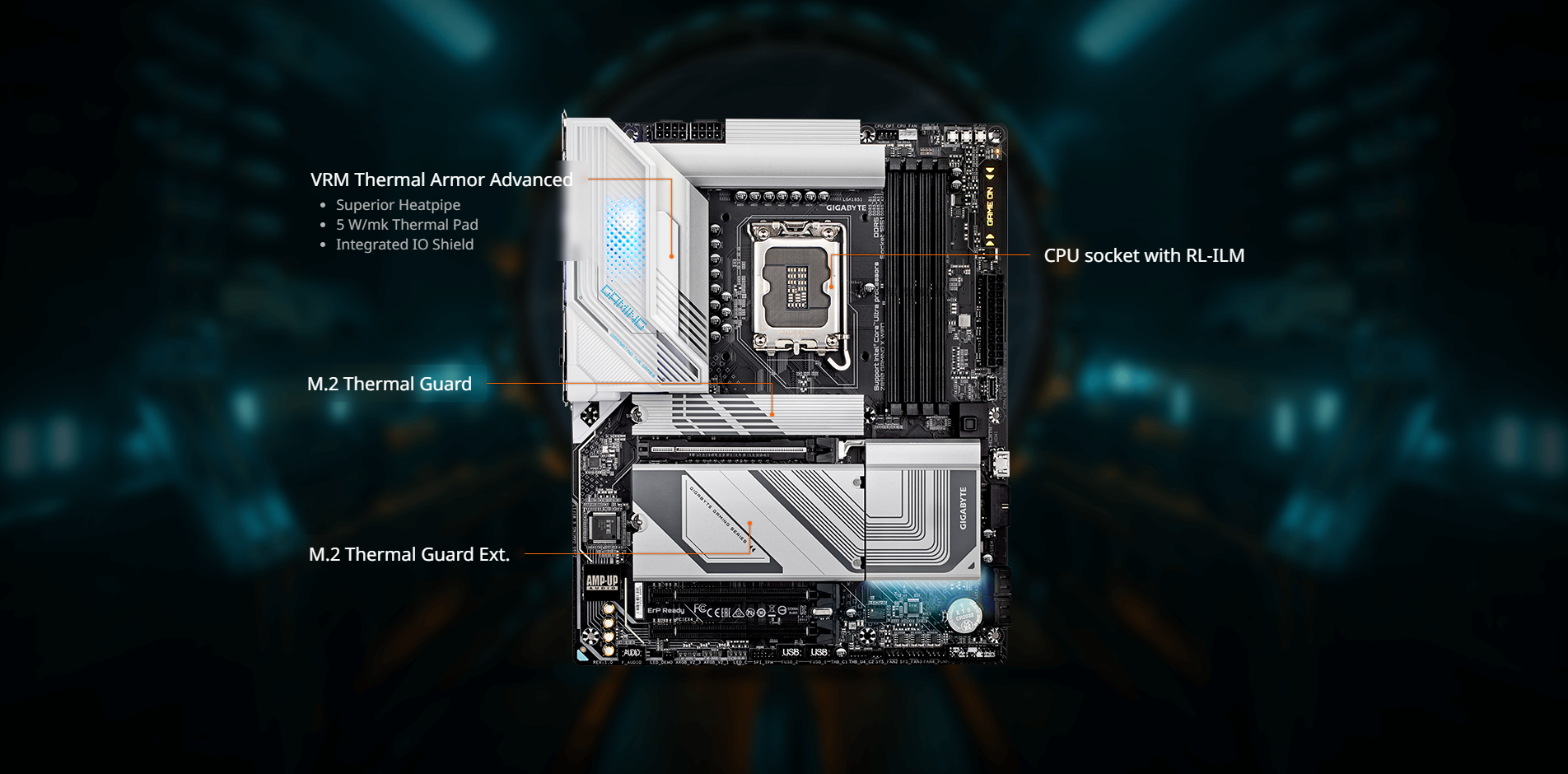 • Efficient Thermal : VRM Thermal Armor Advanced & M.2 Thermal Guard