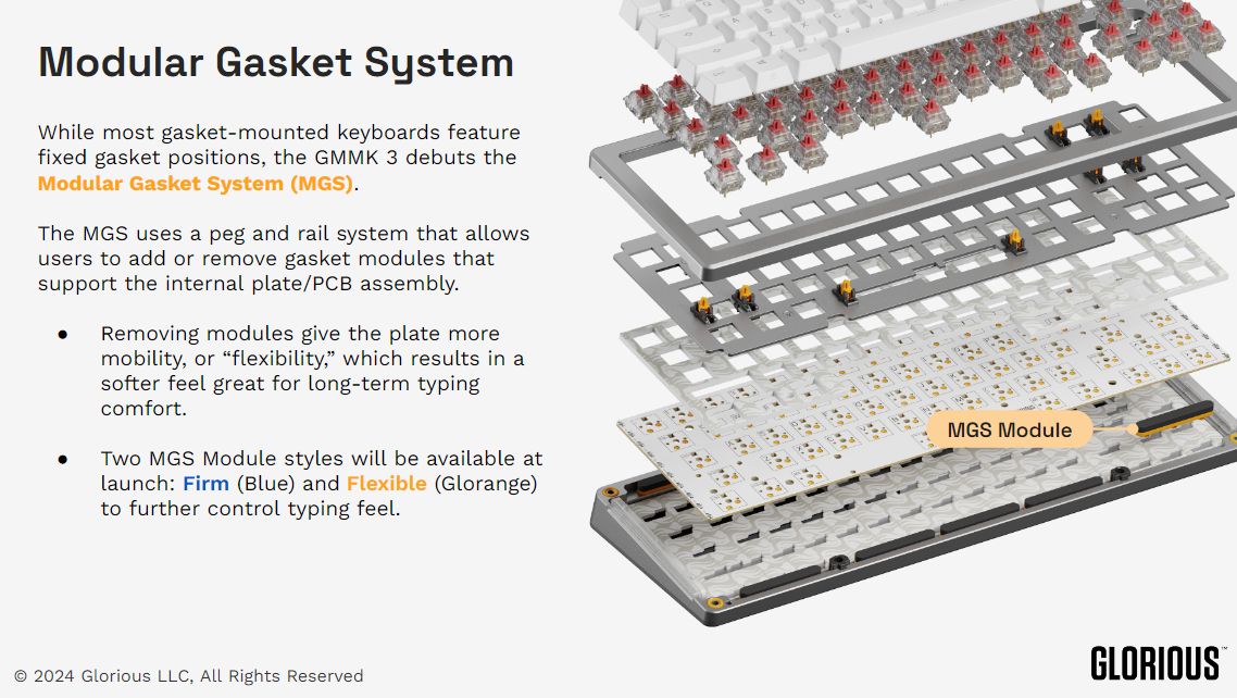Gaskets let you adjust the firmness or flexibility of your keypresses. You can easily customize the GMMK 3's internal gaskets thanks to their simple building blocks-inspired design.