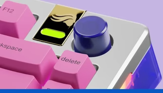 Form meets function with the programmable knob and the RGB accent badge. Available in various materials and colors, and are easily swappable in a matter of seconds.