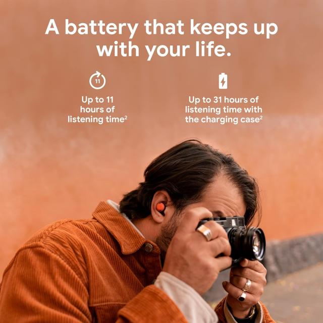 With Active Noise Cancellation off, up to 11 hours of earbuds listening time, and up to 31 hours total listening time with the charging case.