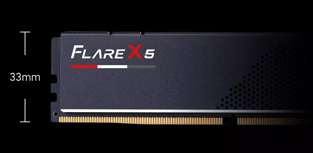 Проектирана за поддържащи DDR5 платформи AMD AM5, DDR5 паметта от серията Flare X5 е създадена за висока производителност с нископрофилен дизайн. С помощта на AMD EXPO овърклок профили за лесно овърклокване на паметта, потребителите могат лесно да активират овърклок производителност, като просто активират EXPO в BIOS на съвместими системи.