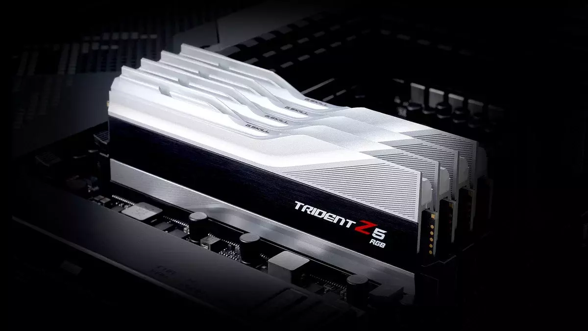 Trident Z5 RGB series DDR5 memory is designed for ultra-high performance on DDR5 platforms. Featuring a sleek and streamlined aluminum heatspreader design, available in metallic silver or matte black, the Trident Z5 RGB series DDR5 DRAM memory is the ideal choice to build a high-performance system.