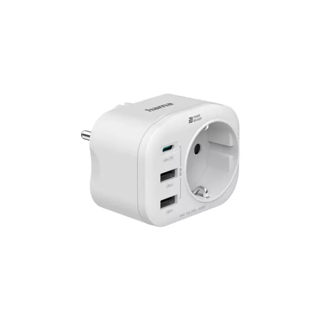 Мултипортов контакт HAMA, 4 гнезда, 1 x USB-C PD, 2 x USB-A, 20W, Бял