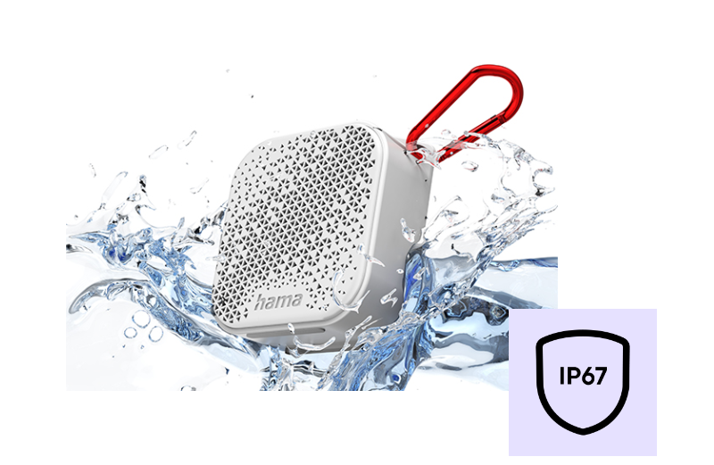 Despite the handy pocket size, the small Bluetooth speaker is enormously robust and easily withstands external influences. The IP67 standard secures your music against solid and liquid hazards. The rating "dustproof and waterproof" even stands for optimal protection when submerged for up to 30 minutes at a maximum depth of one meter. This makes the speaker ideal for outdoor adventures of all kinds: sandy beaches and off-road biking, downpours and even temporary immersion at the pool party are no obstacle. And of course, dancing in the shower should not be neglected!