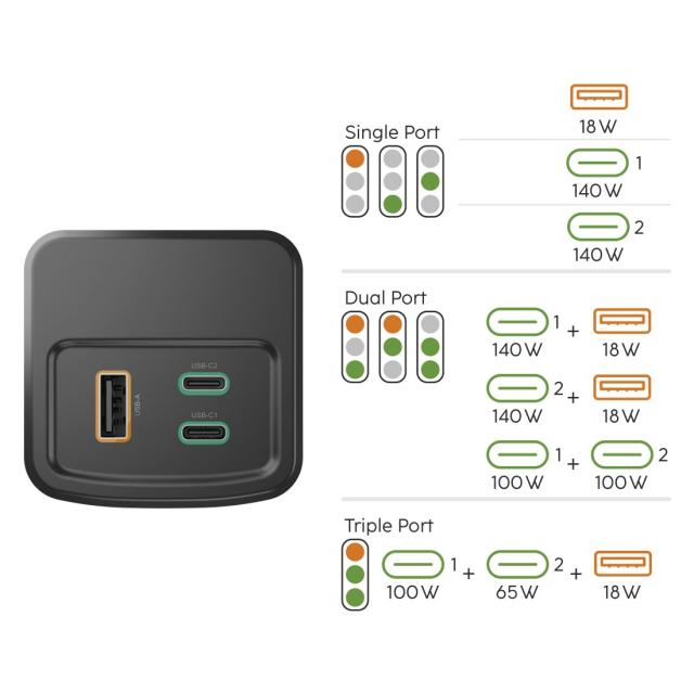 - Dual Charge (Pass-Through) – зареждай устройства, докато батерията сама се зарежда.