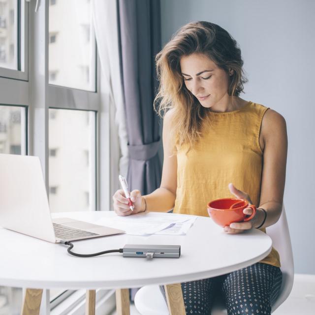 4-портов хъб USB-C HAMA, 2 x USB-A, USB-C, LAN/Ethernet, Сив