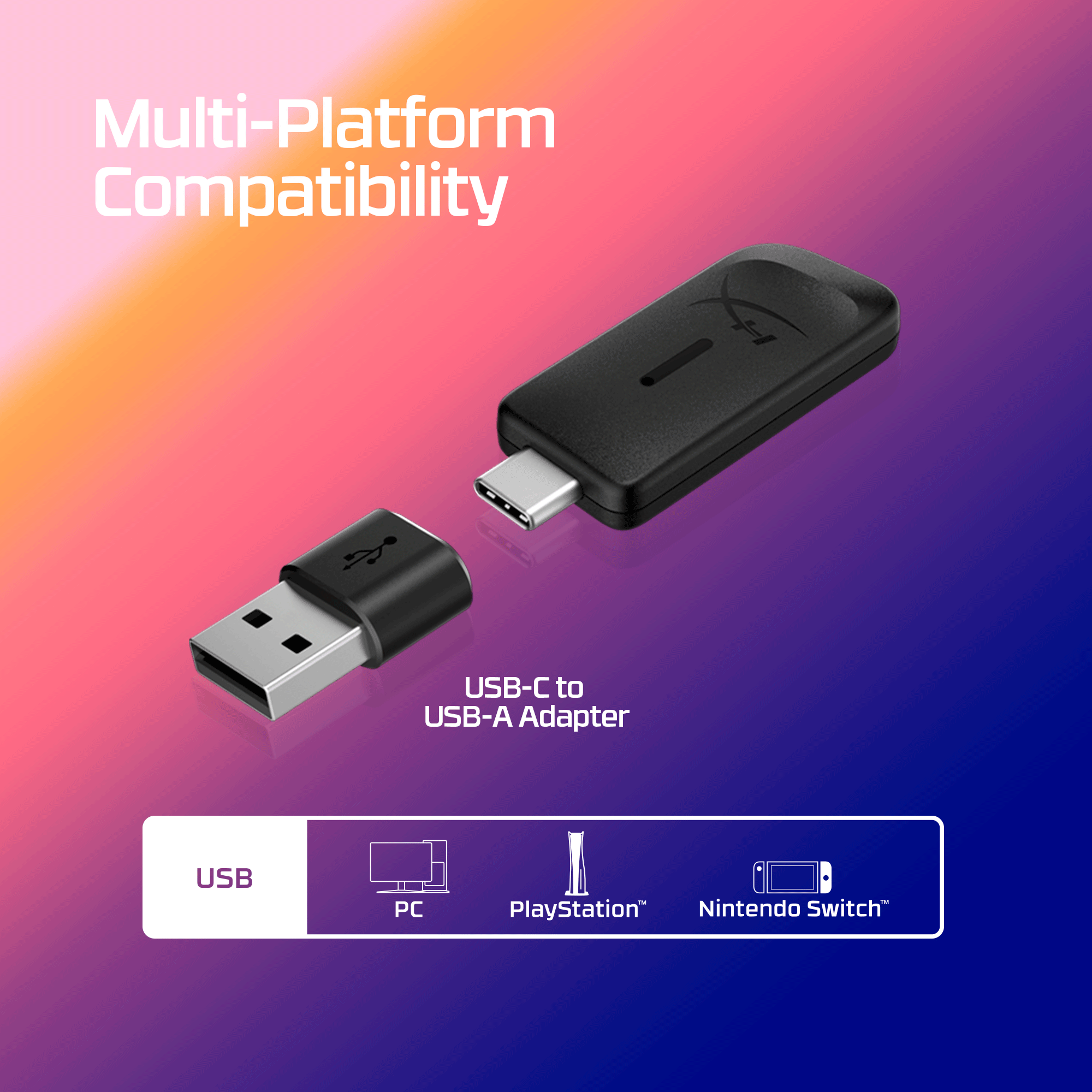 The Cloud III Wireless works with PC, PS5, PS4, and Nintendo Switch via the wireless dongle that can connect with USB-A or USB-C.