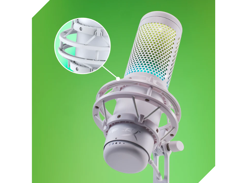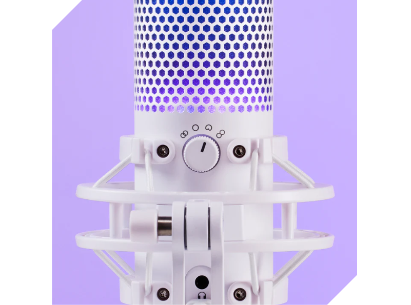 The HyperX QuadCast S is a USB condenser microphone that both sounds great and looks great. The supremely stunning RGB lighting and dynamic effects will add style and flair to any stream or setup and is customizable via HyperX NGENUITY software. The QuadCast S is an all-inclusive mic, featuring an anti-vibration shock mount to help quiet the rumbles of daily life and a built-in pop filter to muffle plosive sounds. Instantly know your mic status with the LED indicator, and simply tap-to-mute to avoid awkward broadcasting accidents. With four selectable polar patterns, this mic’s prepared for nearly any recording situation and features a gain control dial to quickly regulate input sensitivity. The included mount adapter fits 3/8” and 5/8” thread sizes, compatible with most stands. QuadCast S is certified by Discord and TeamSpeak so you can ensure that your microphone is broadcasting loud and clear for all your followers and listeners, and you can also monitor your mic in real time using the convenient headphone jack on the back of the mic. It’s multi-platform compatible, so you can deliver quality sound output whether you’re connecting to a PC, PS5, PS4, or Mac.