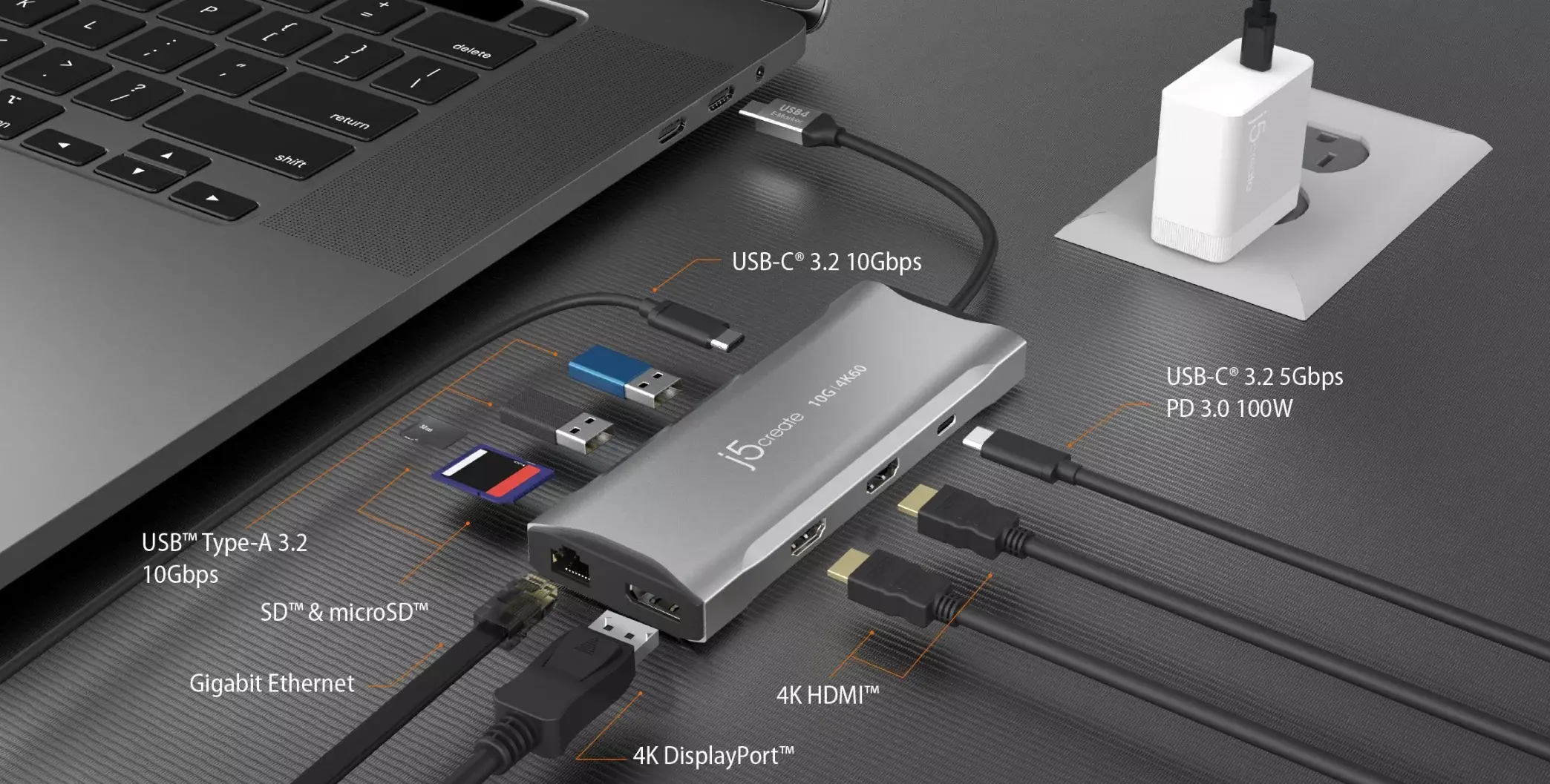 Докинг станция j5create JCD397 100W, 4K60 Elite USB-C, 10Gbps