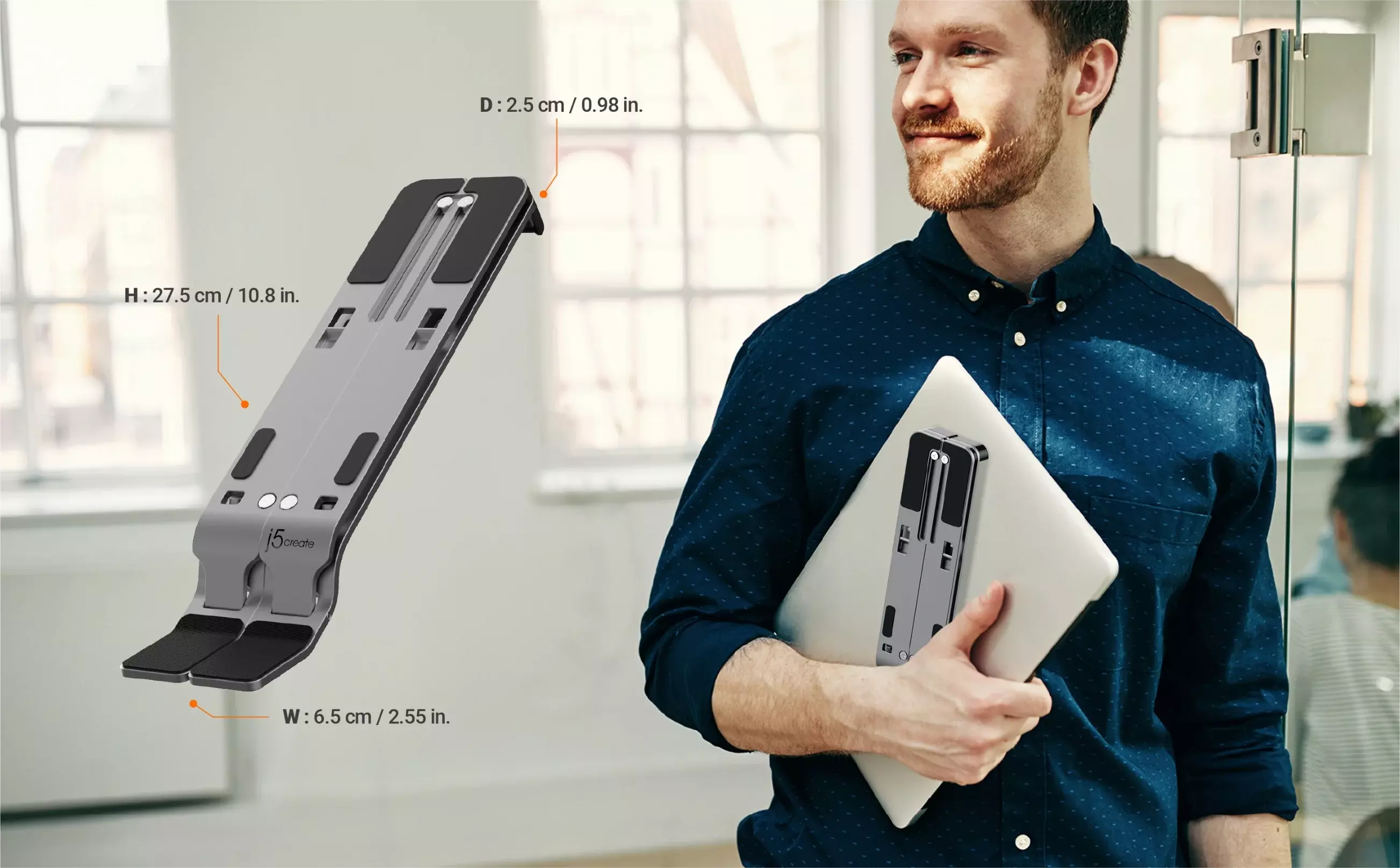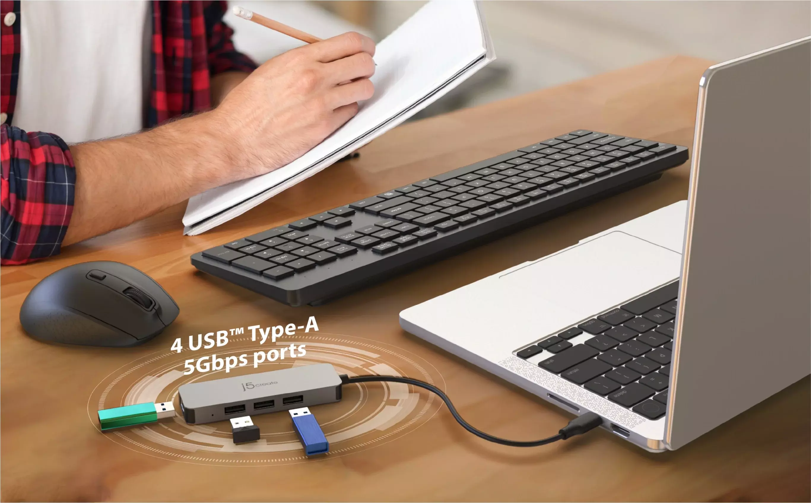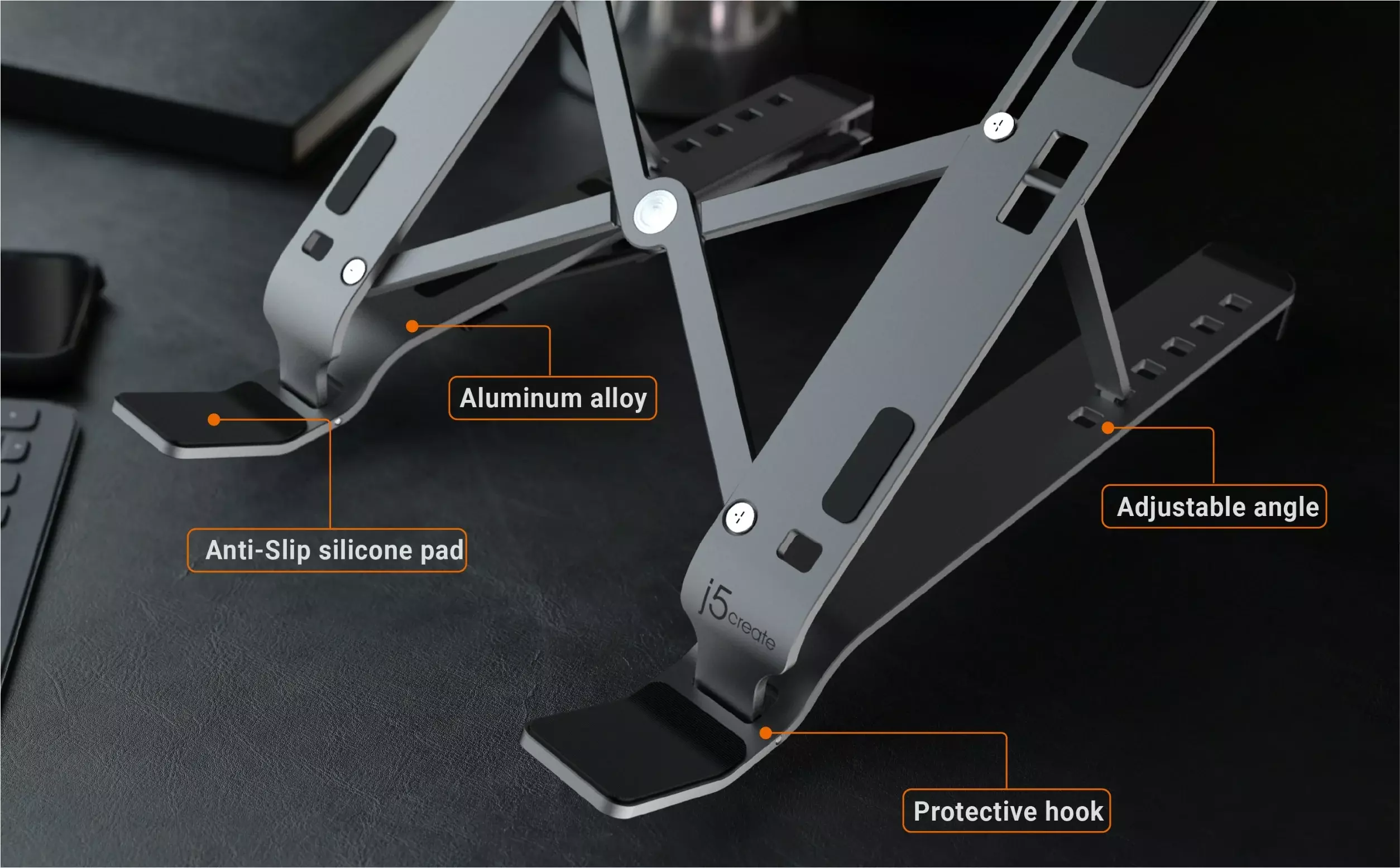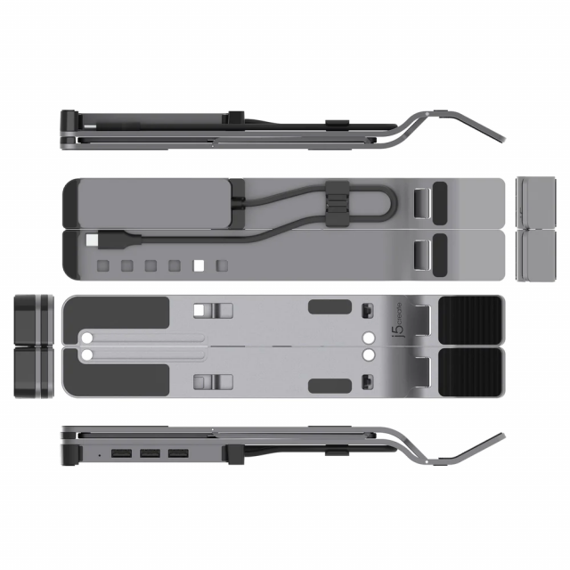 Поставка за лаптоп j5create JTS223, 4 портов USB-A хъб, Алуминиева