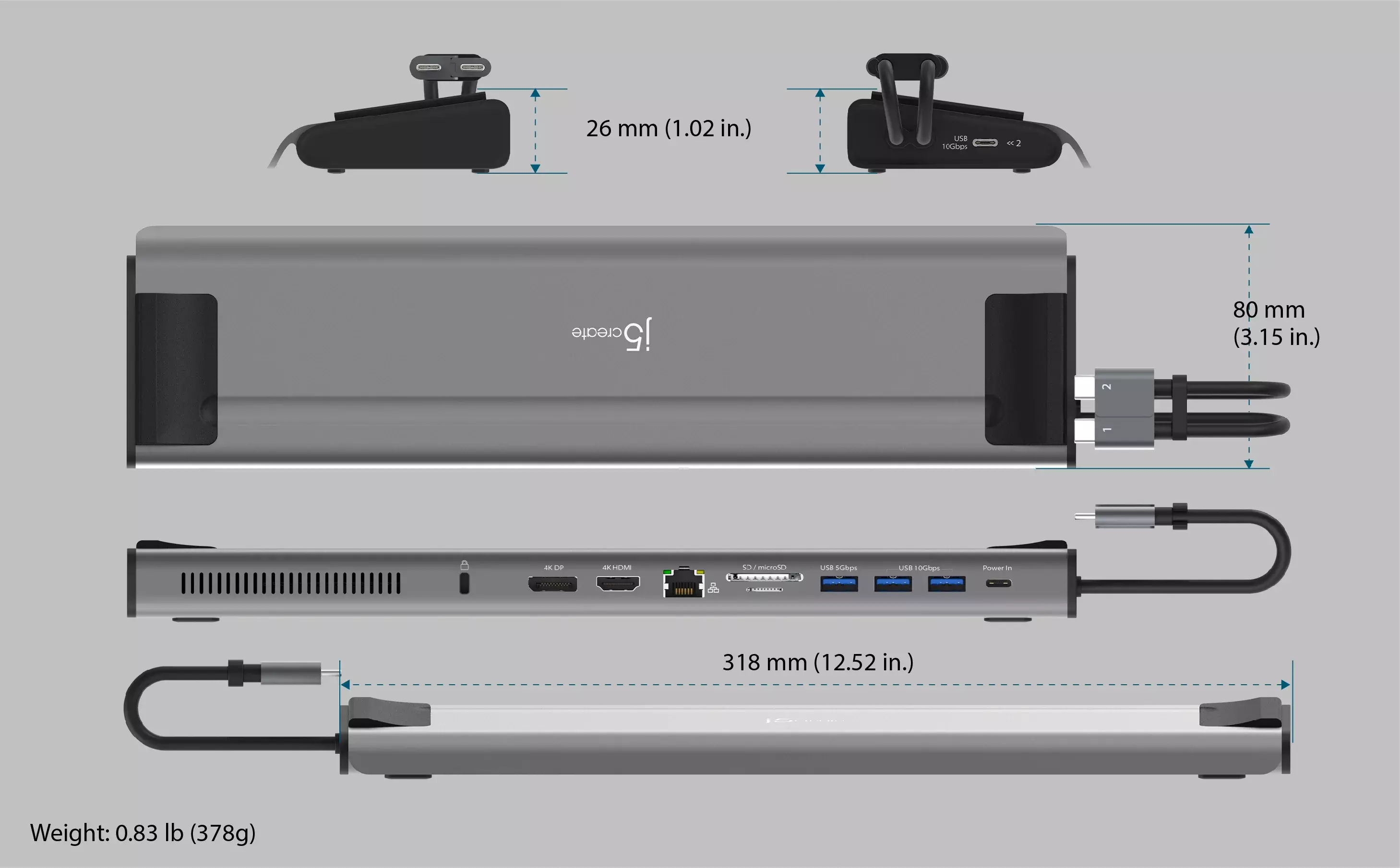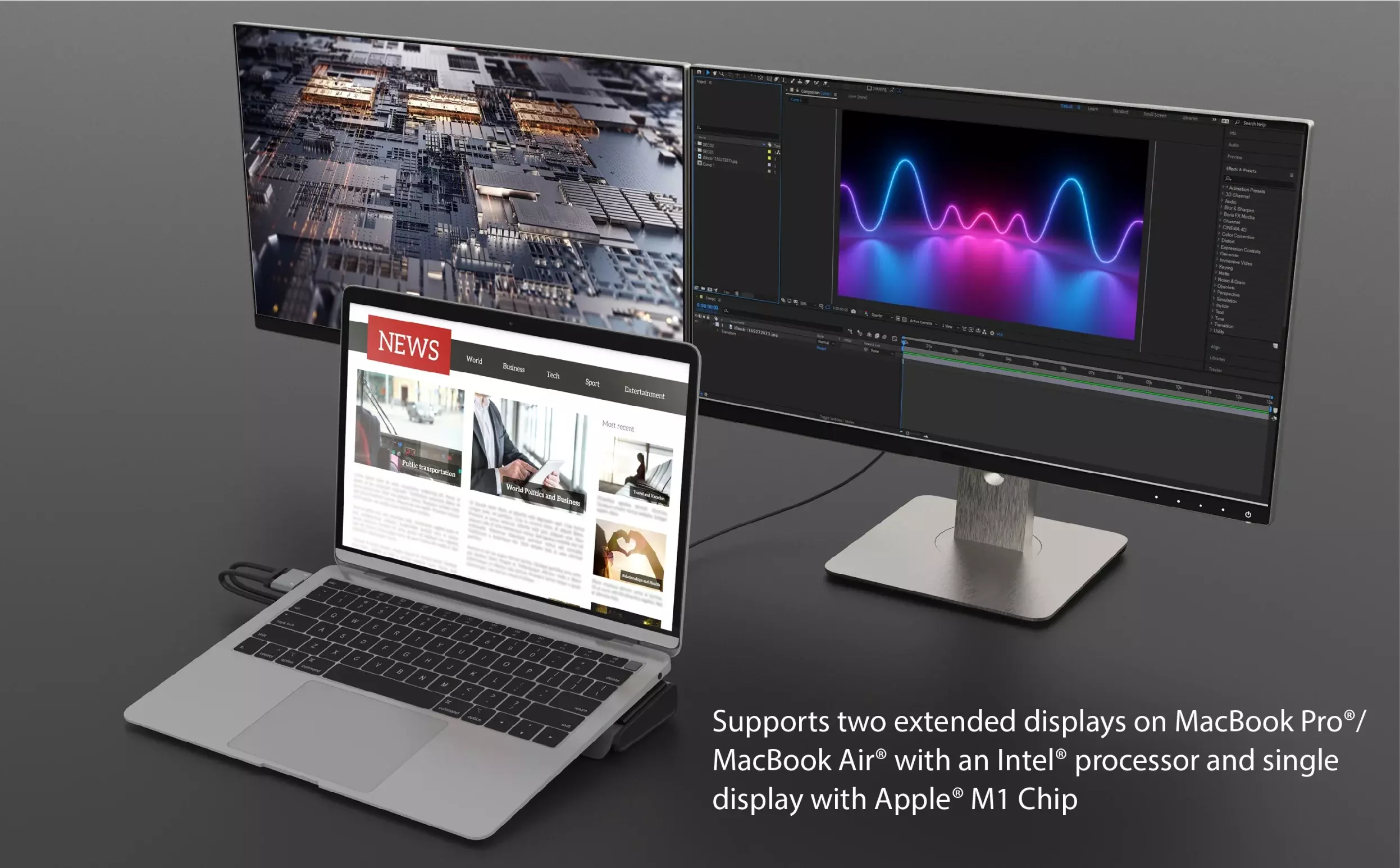 *Dual displays via two USB-C ports supporting DP Alt Mode or a single 4K HDMI display with one USB-C port supporting DP Alt Mode