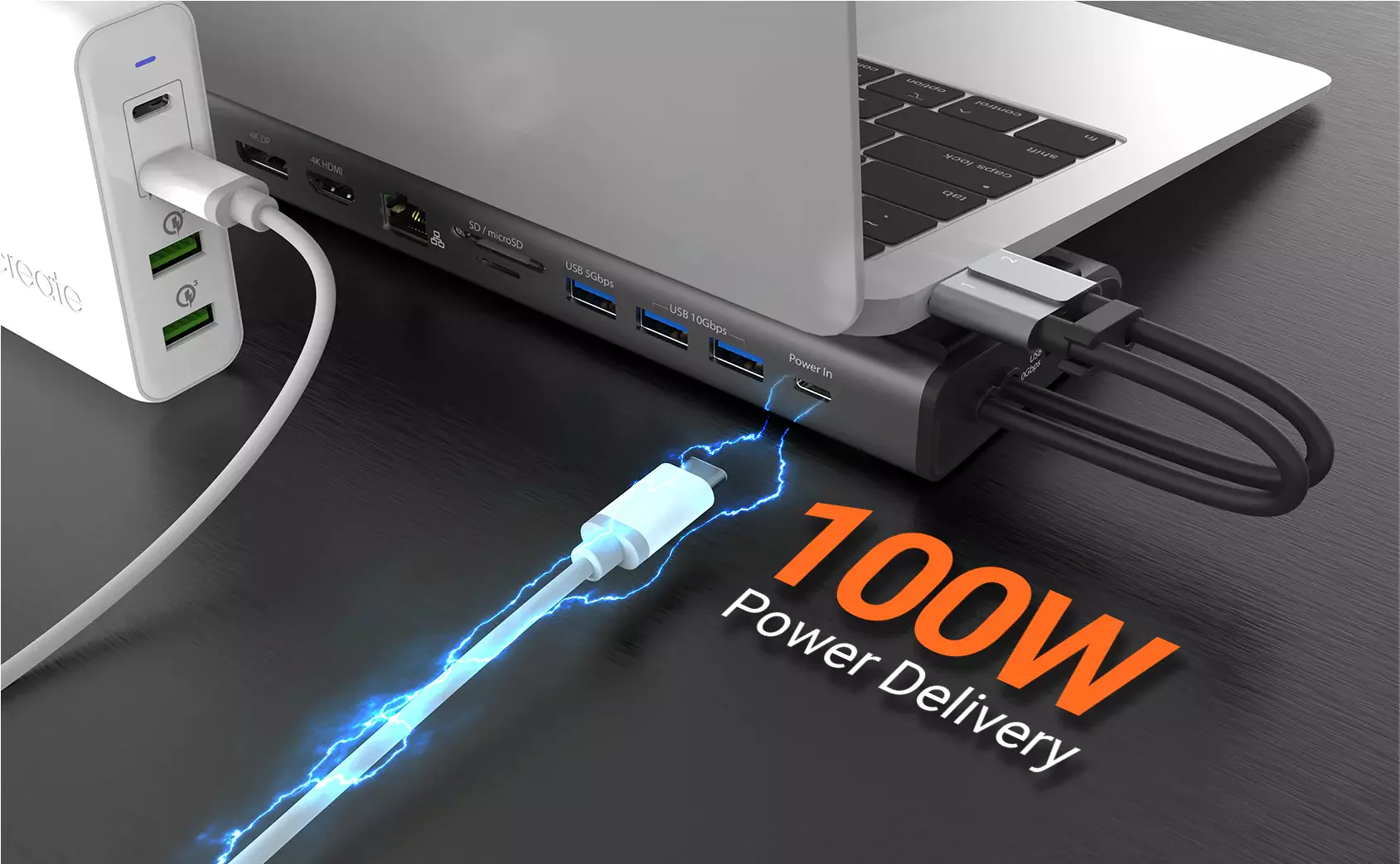 | Power Delivery | Up to 100W via USB-C |