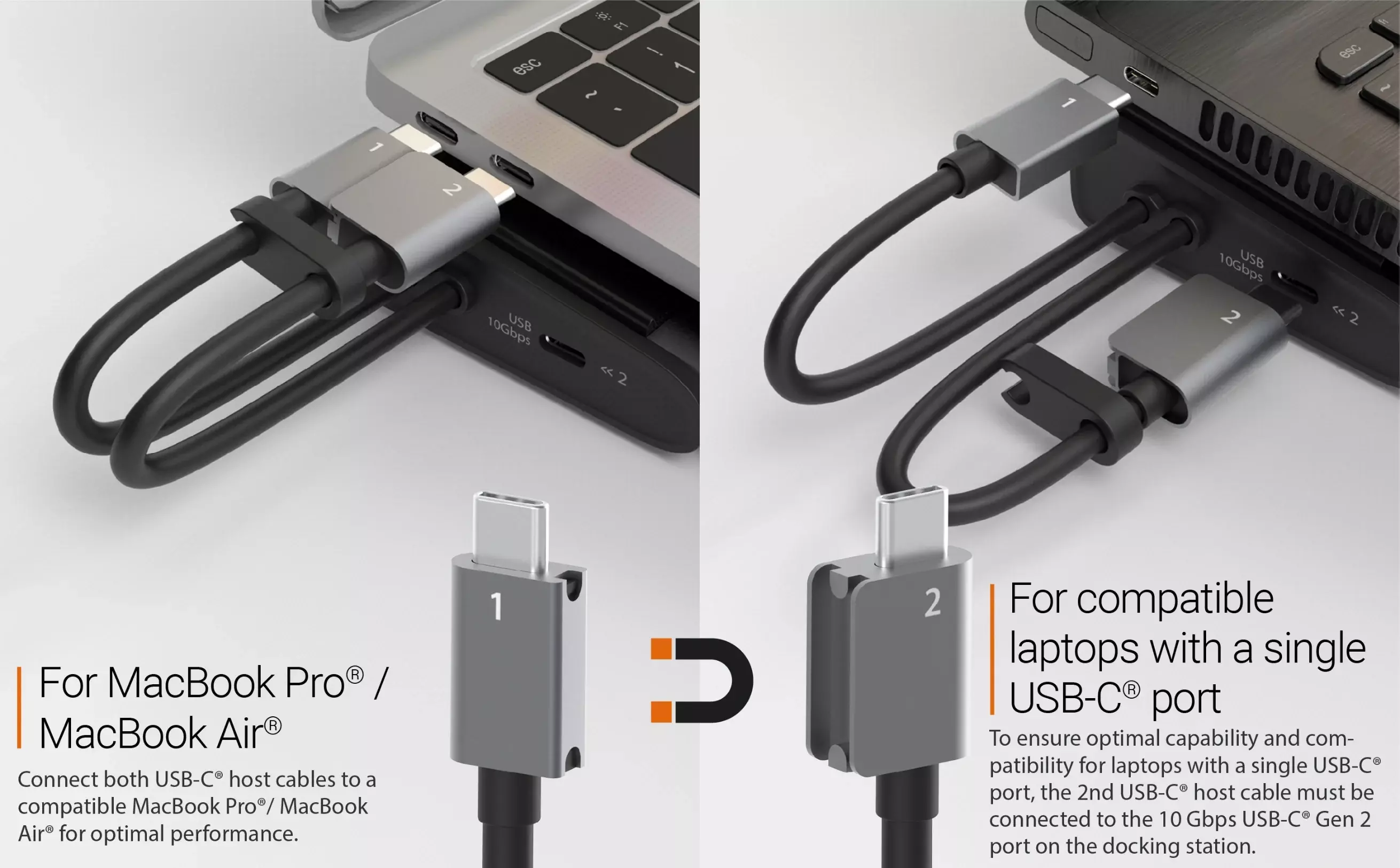 DisplayPort alternate mode allows you to connect two 4K 60 Hz displays via HDMI and DisplayPort or add a single 4K HDMI display when the docking station is connected to only one USB-C host