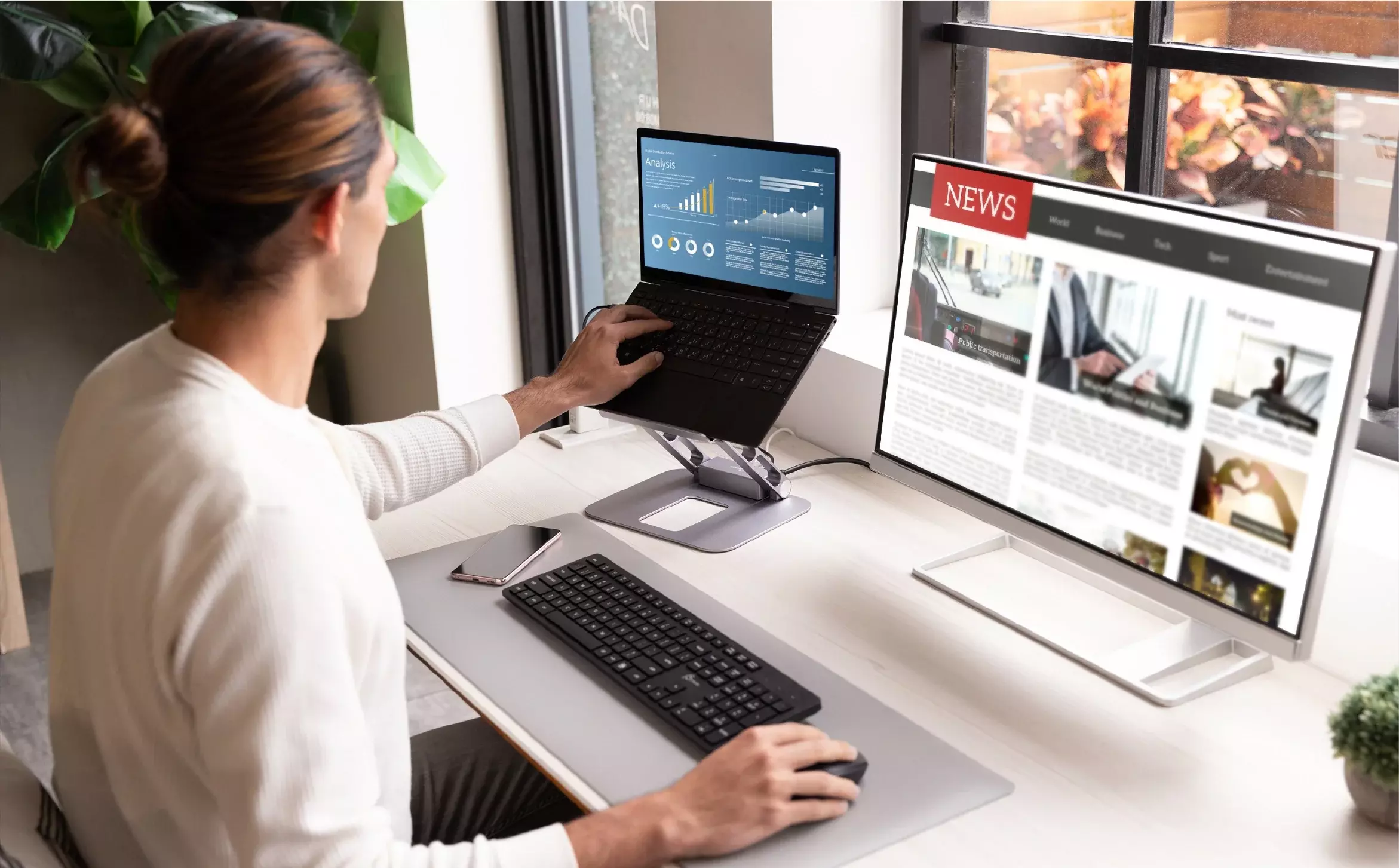 Adjustable viewing angles and heights help reduce eye strain and improve posture