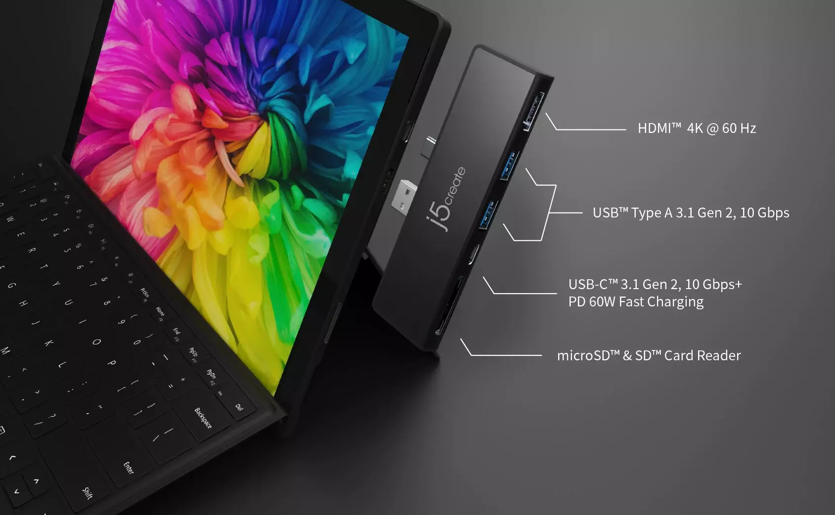 Докинг станция j5create ULTRADRIVEMINIDOCK JCD324, За Surface Pro 7