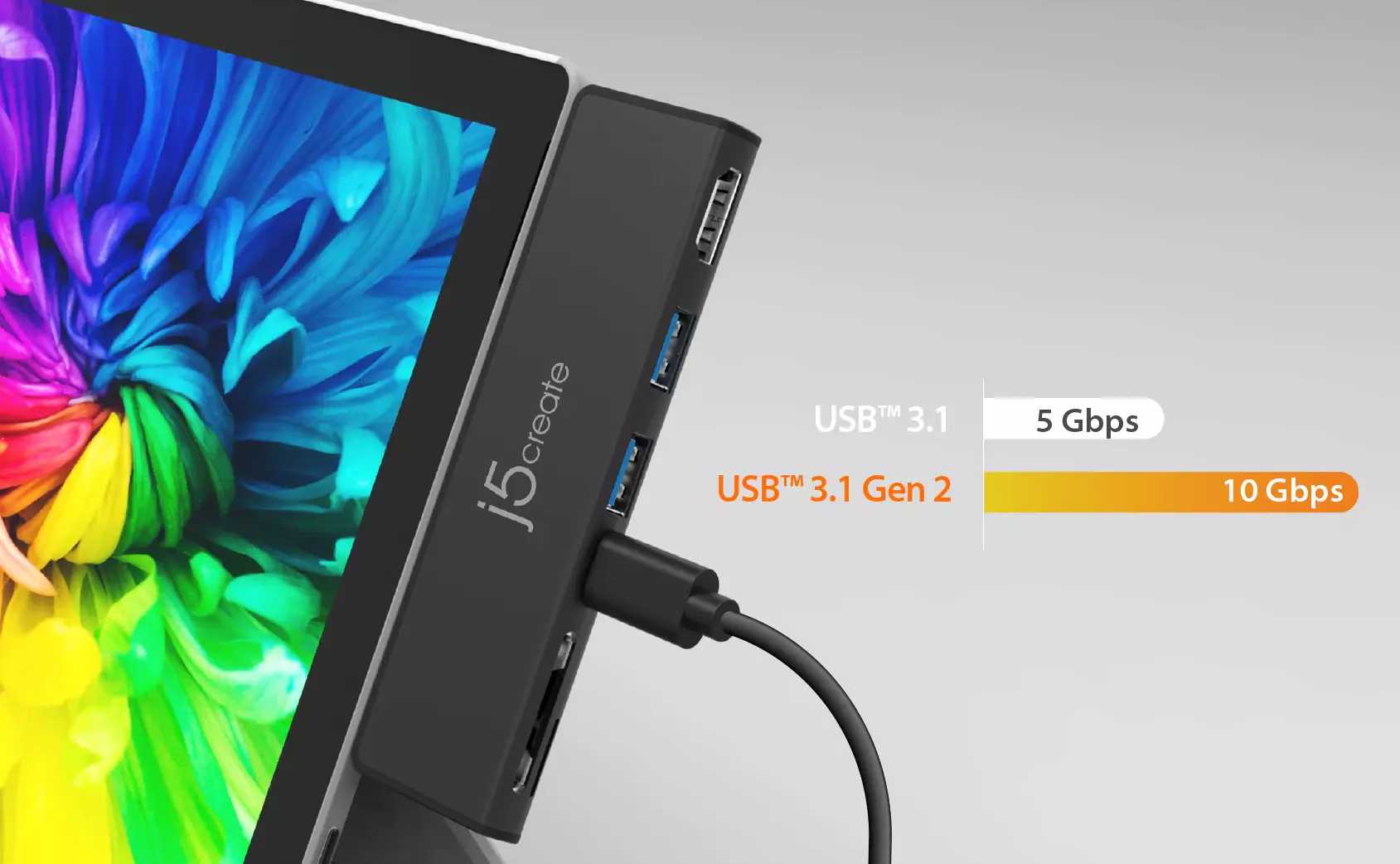 USB 3.1 Gen 2 provides up to 10 Gbps transfer speeds, which is 20x faster than USB 2.0, and 2x faster than USB 3.0.