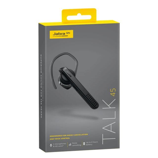 Jabra Talk 45 е висок клас Bluetooth слушалка, която ще ти предложи стил и удобство и само 7.2 грама тегло. Слушалката има страхотно шумопотискане и гласов контрол, а благодарение на технологията HD Voice с 2 микрофона на Jabra, вашите разговори ще бъдат с кристална яснота. Talk 45 извлича максимума от вашите медии, като можете да я използвате за вашите GPS опции, музика или подкасти.