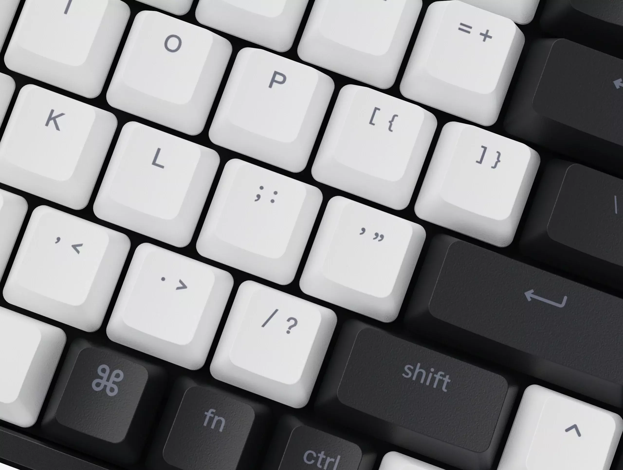 Please note that the legends on the black and white color keycaps may look slightly different, as the legends on the black keycaps may look less