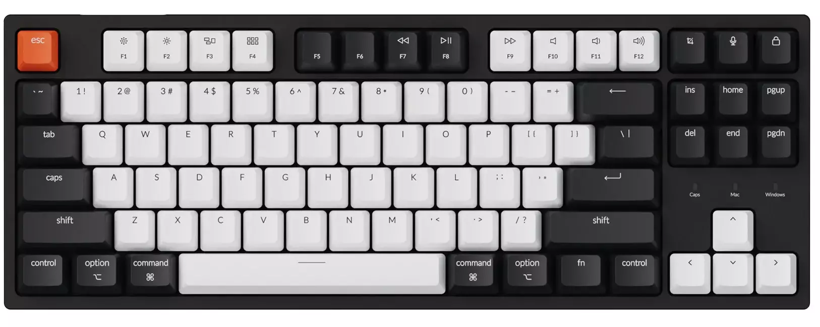 Геймърска механична клавиатура Keychron C1 TKL Gateron G Pro Red Switch, White Backlight