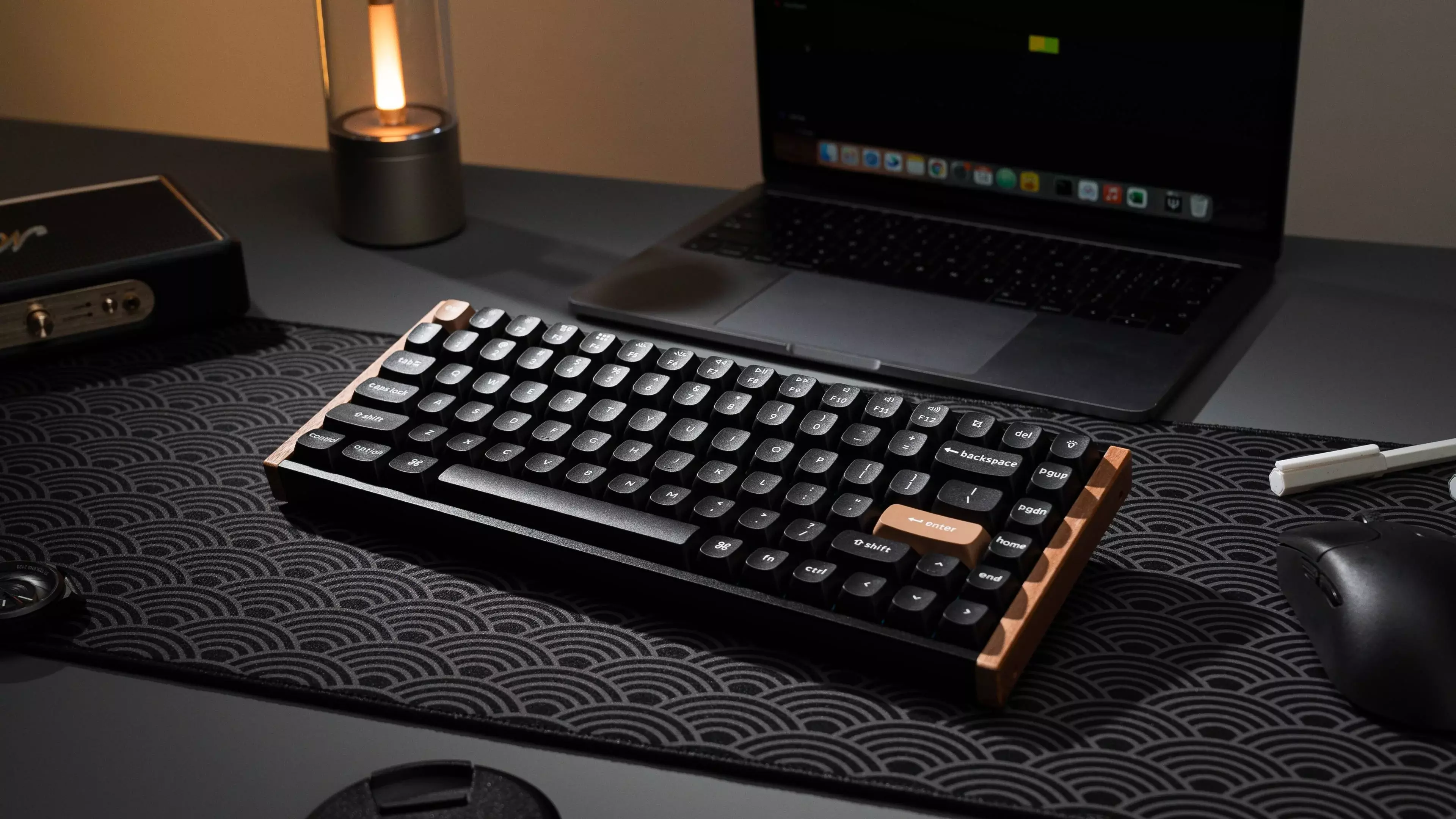 - Премиум изработка: Включва двойно инжектирани PBT капачки за клавиши, акустични материали за намаляване на шума и стилна алуминиева и дървена рамка.