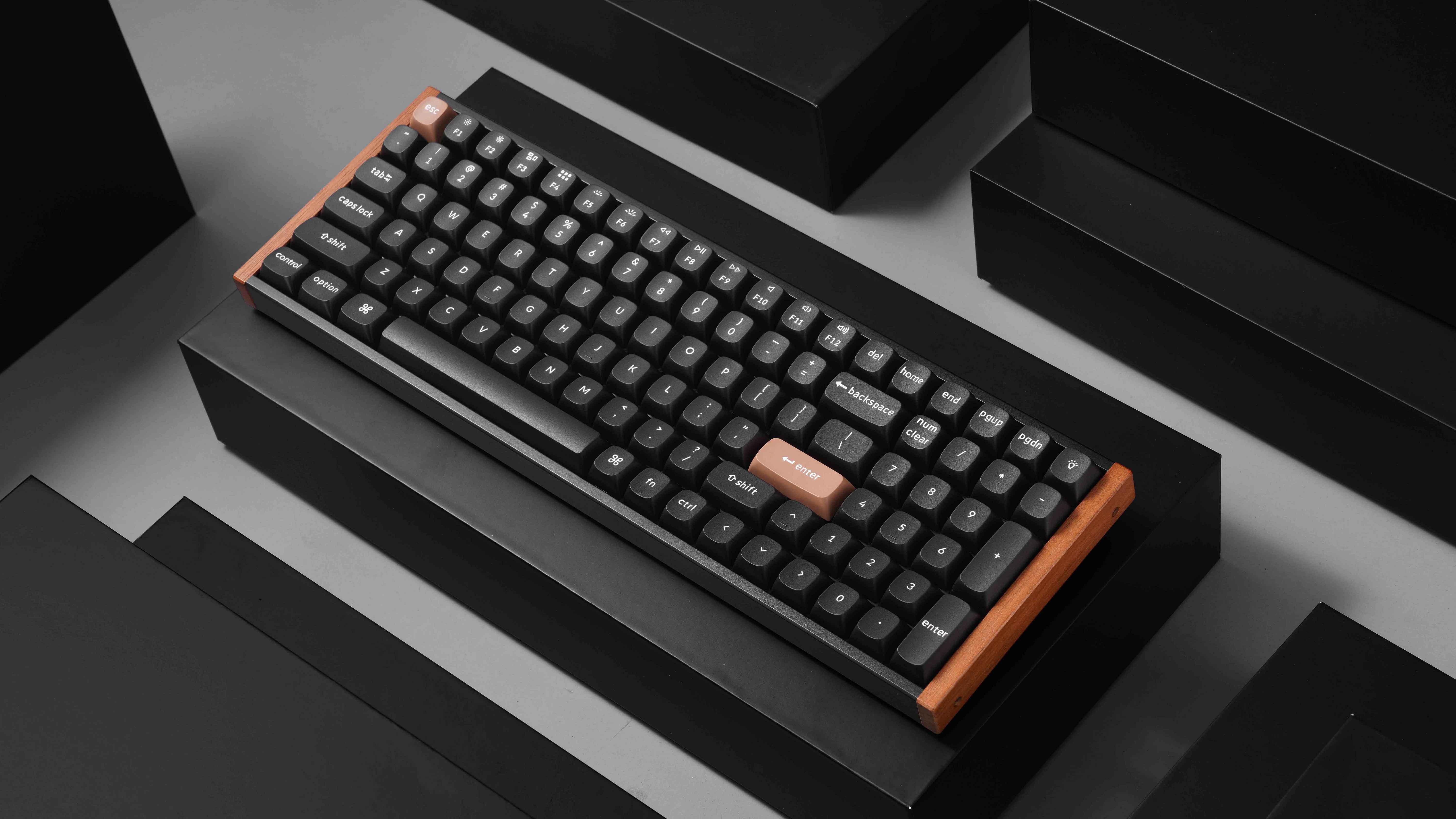 the black version. Both editions feature OSA profile double-shot PBT keycaps and aluminum with wooden frames.