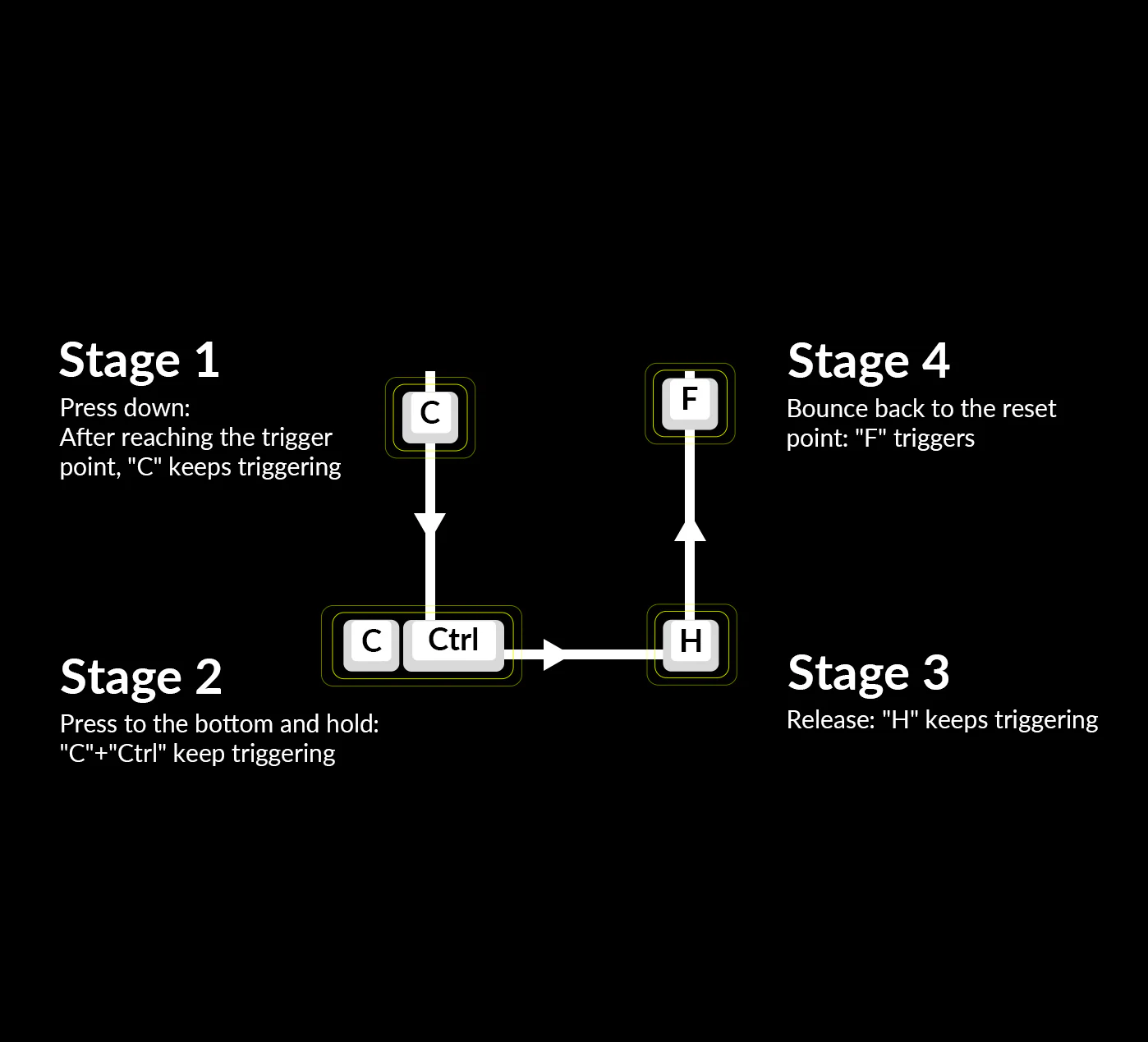 Thanks to Dynamic Keystrokes (DKS), you can now assign up to 4 distinct actions per key based on press depth. A light press