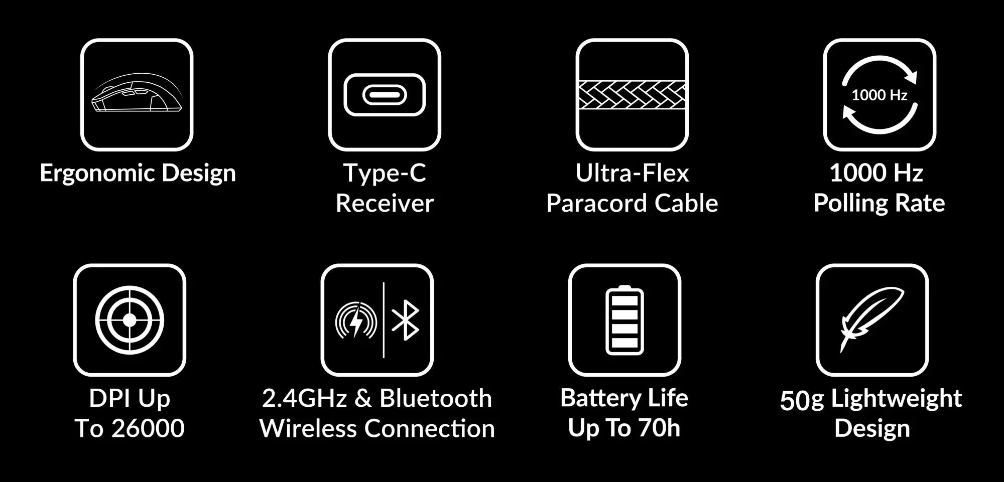 It has the strongest, most competitive grade mouse sensor chip PixArt 3395, with up to 26,000 DPI, up to 650 IPS, and incomparable gripping precision. Whether for work or gaming, it offers an unparalleled experience.