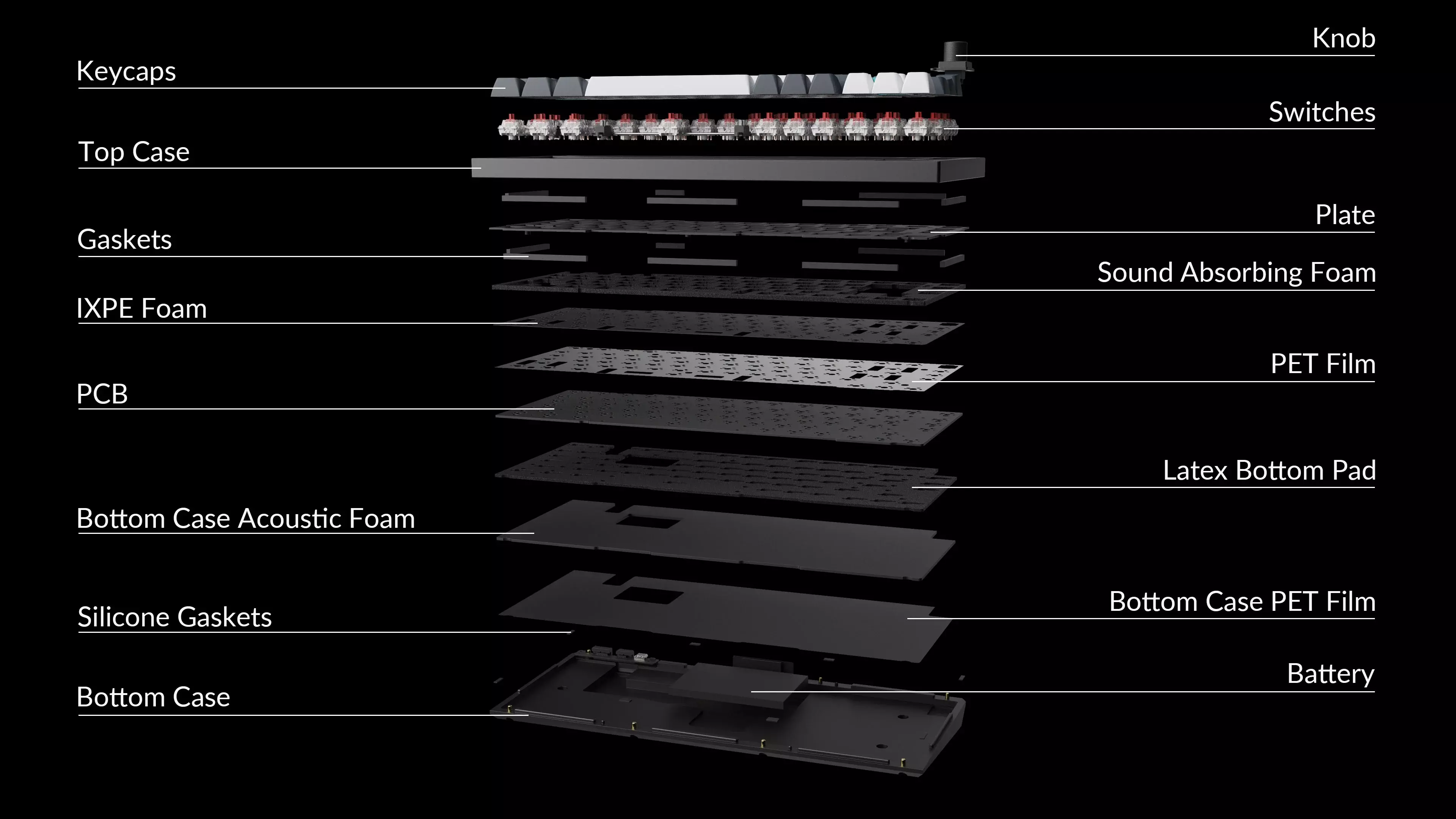 Paired with many other premium features, such as the double-gasket design, PBT keycaps, screw-in stabilizers, and