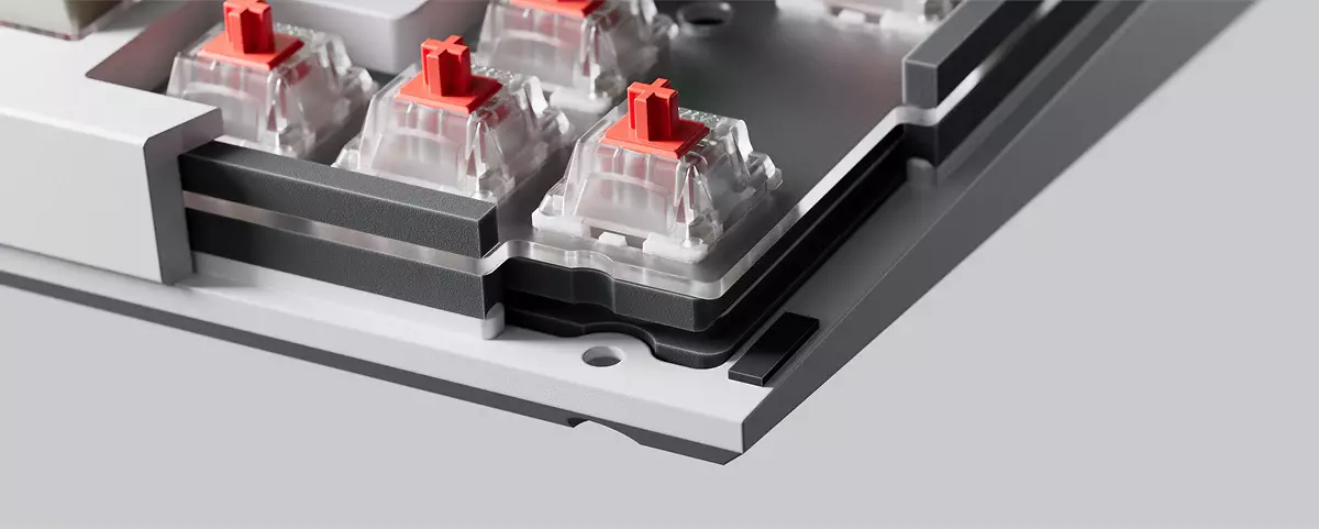 combination allows the keyboard to maintain the flexibility of the gasket structure and improves the overall typing sound.