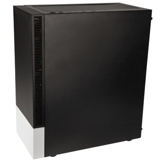 - Mid-tower кутия с двутонален дизайн и частично закрепен панел от закалено стъкло